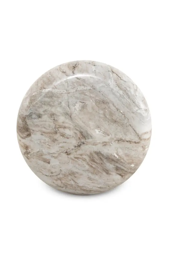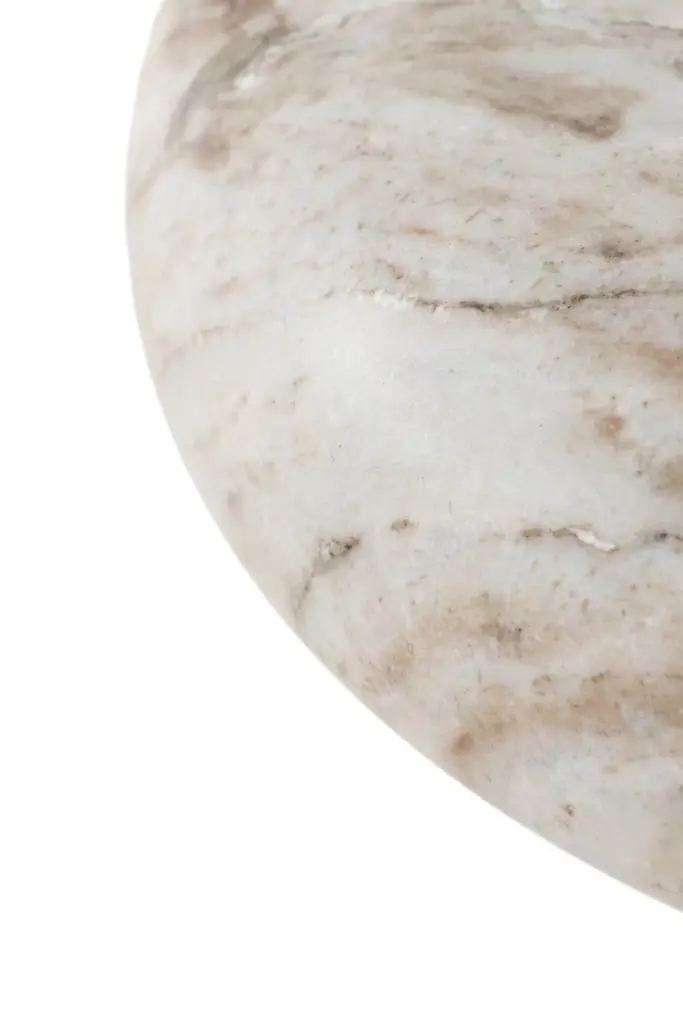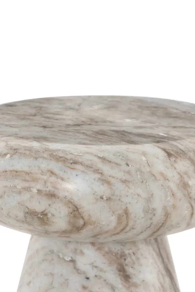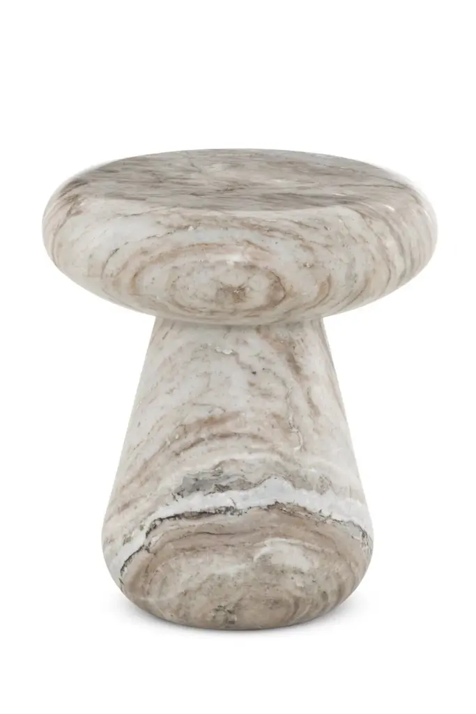 The Pablo Indoor/Outdoor End Table features organic curves and striking veining in Sawar marble, accented by a mix of shades that enhance its sculptural, fluid silhouette.
