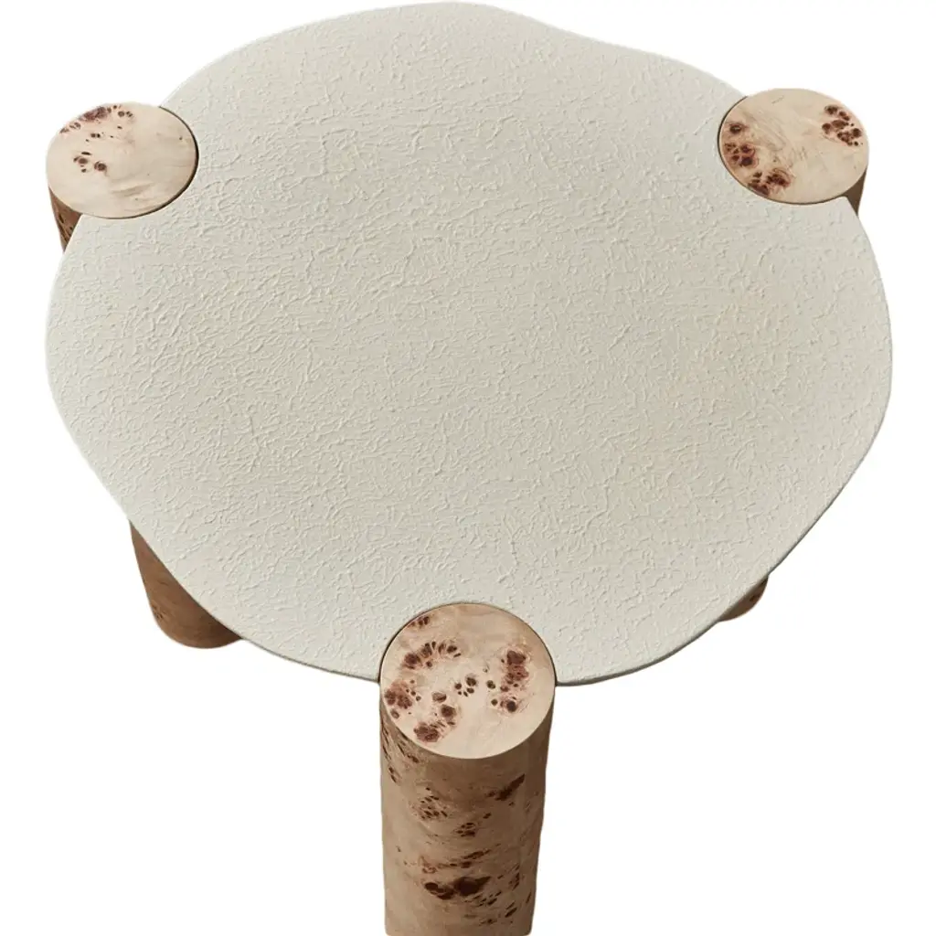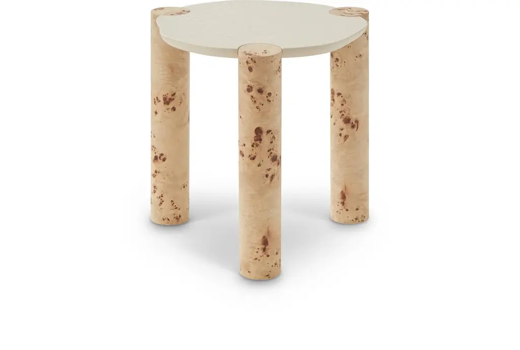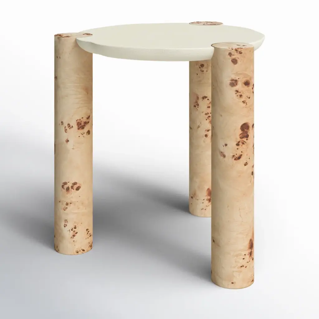 Unleash the captivating fusion of contemporary design and organic textures with the Pacetti End Table. This statement piece boasts rich burl veneer legs that intertwine with an MDF base, both adorned with matching burl veneer for a touch of natural opulence. The table's crown jewel is its white resin top, offering a sleek and modern contrast while providing a durable and easy-to-clean surface. More than just visually striking, the Pacetti Coffee Table is meticulously crafted for lasting functionality.