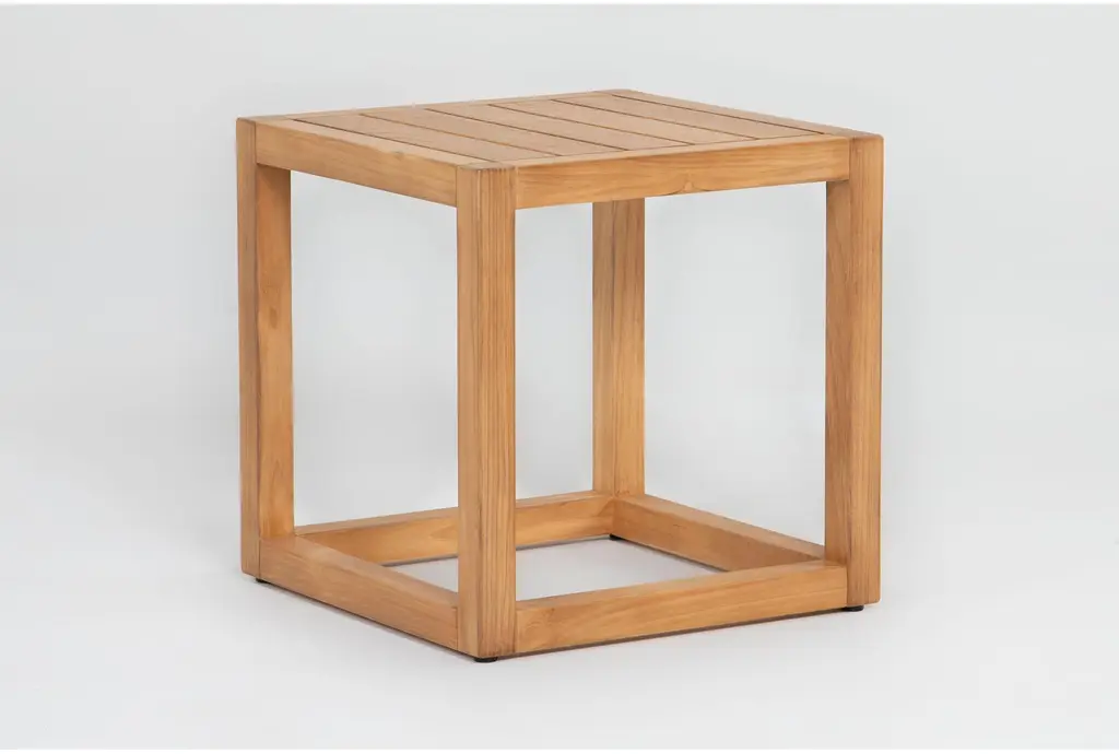 Enhance your outdoor space with the Pacifica Natural Teak Wood Outdoor End Table. This modern square end table, crafted from durable teak wood, features a natural finish that complements any outdoor decor. Its water-resistant properties ensure longevity and reliable performance in various weather conditions.