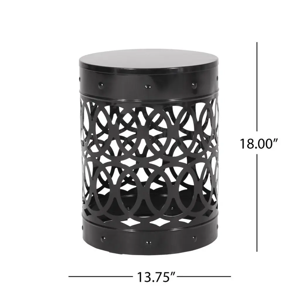 Paged Modern Round Outdoor Side Table,iron Patio End Tables For Backyard,pool, Indoor Companion,durable And Stable,black