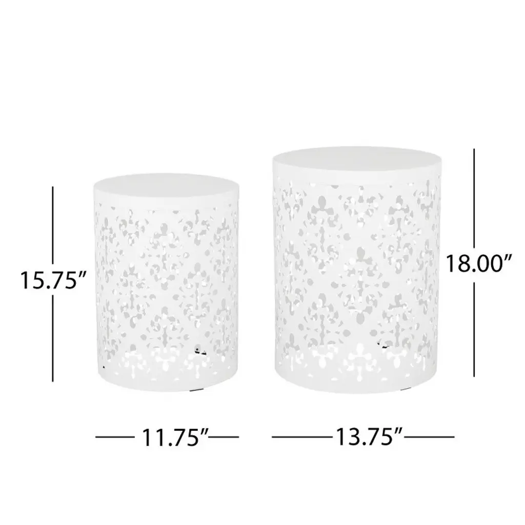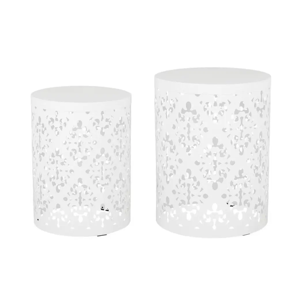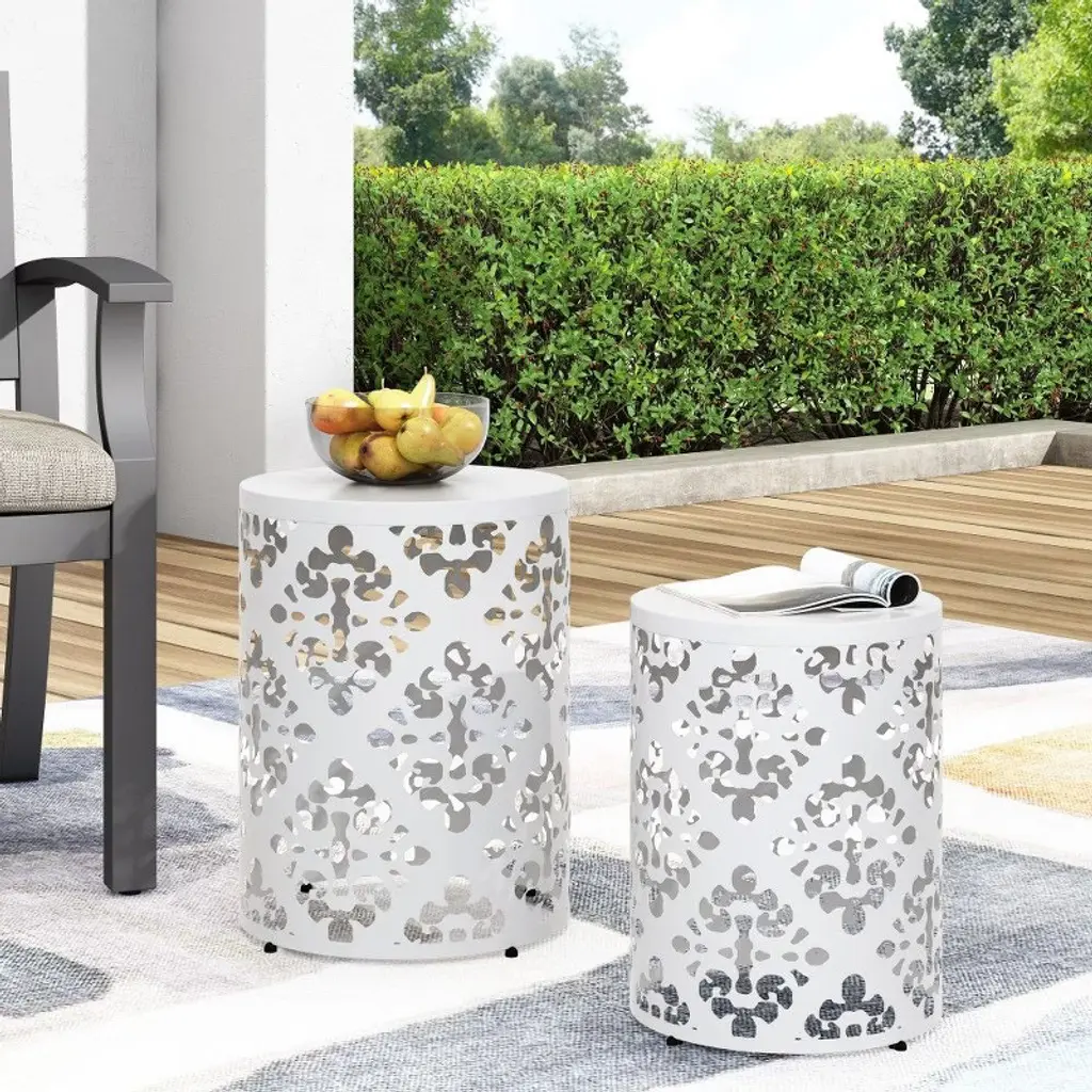 Paged Round Outdoor Side Table With Durable Frame,metal Patio End Tables For Backyard,pool,indoor Companion,durable And Rustproof,2pc,white