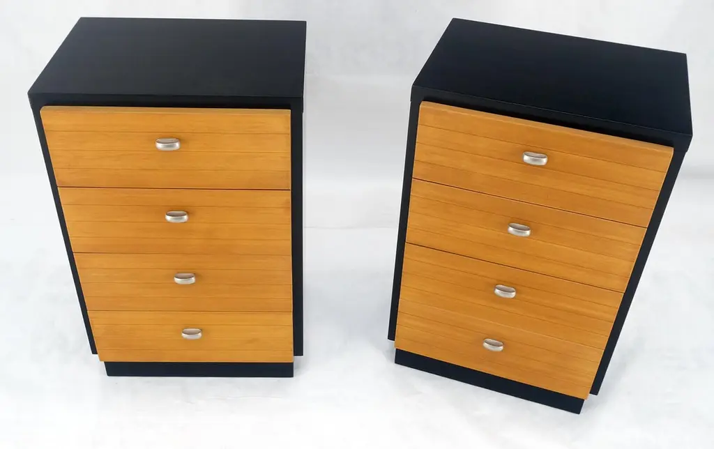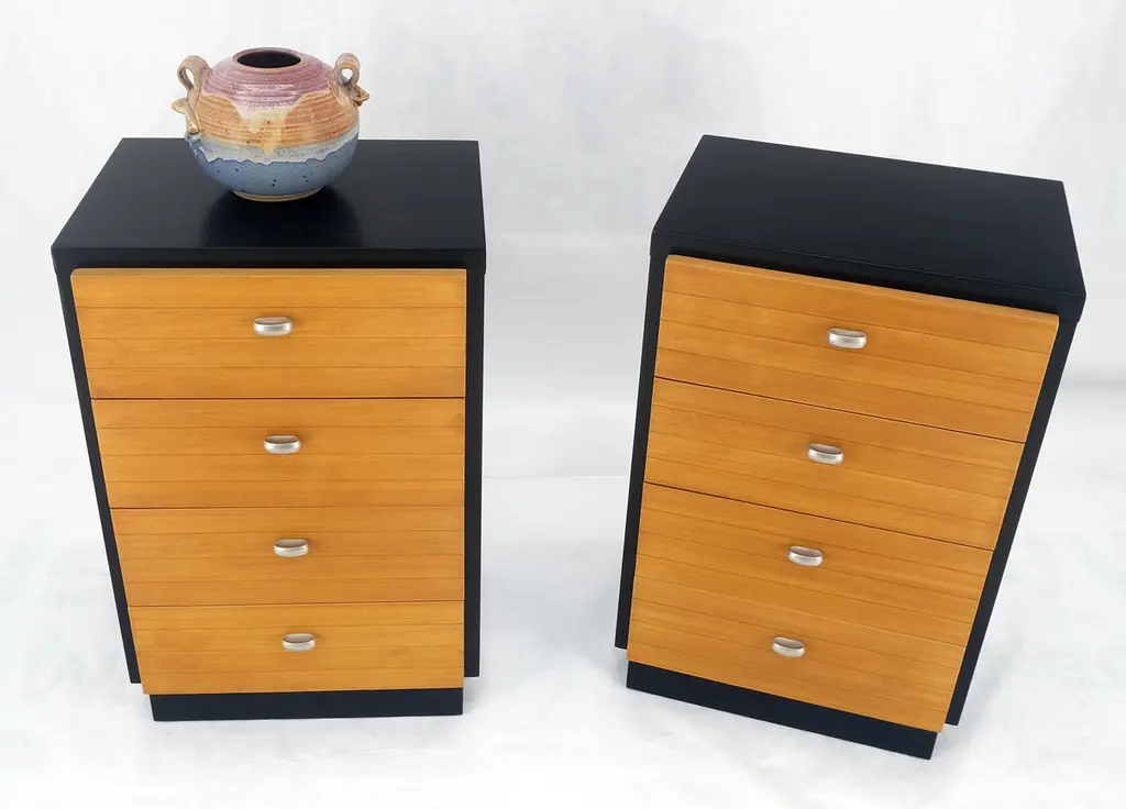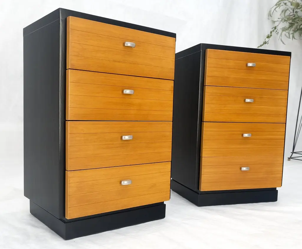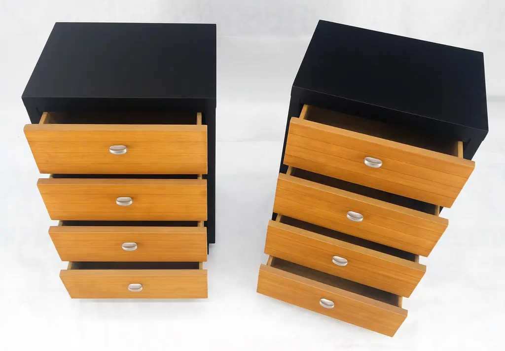 Pair of 4 Drawers Blond Birch Drawers Black Lacquer Night Stands End Side Tables MINT!