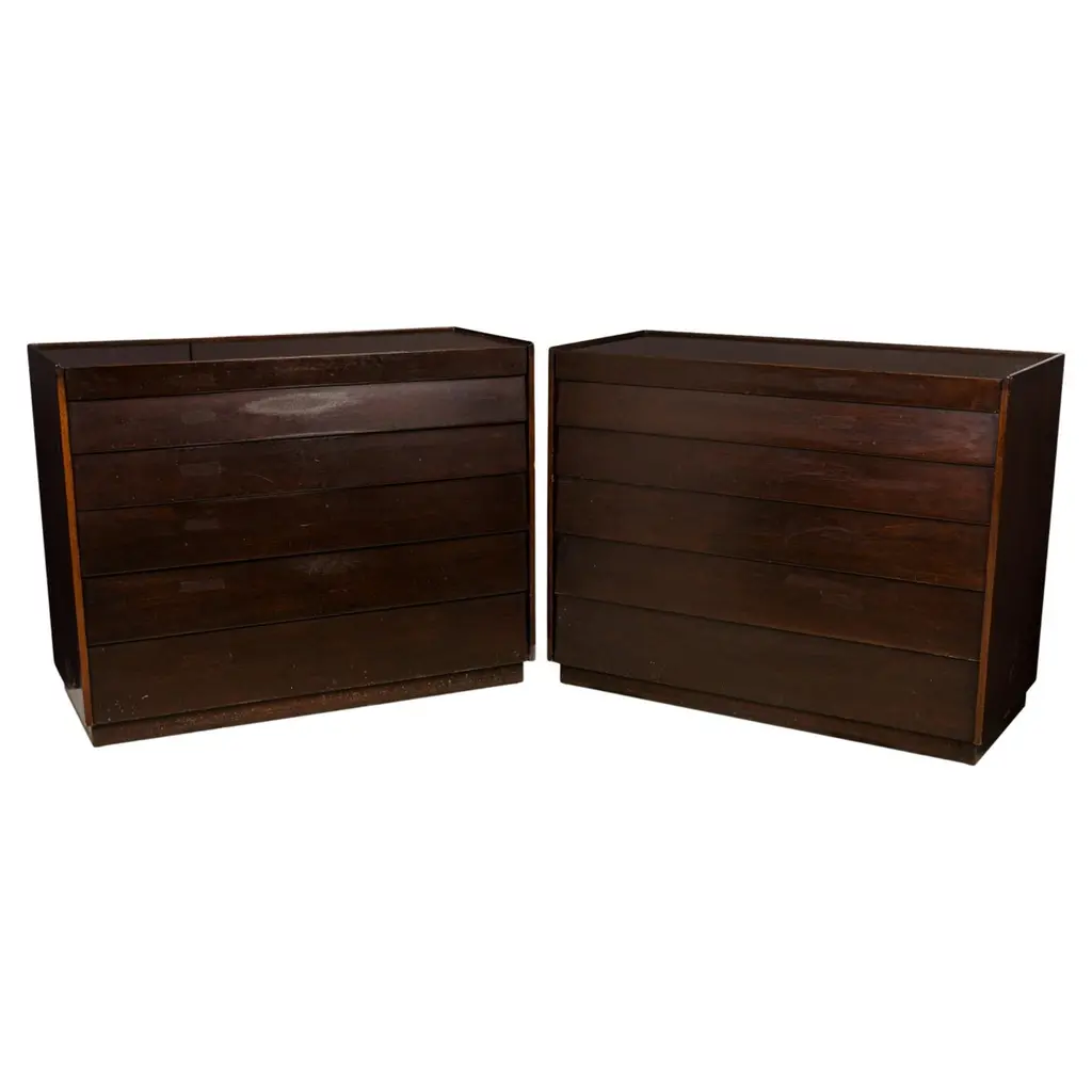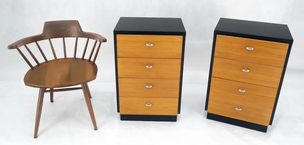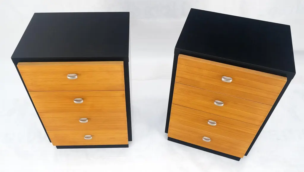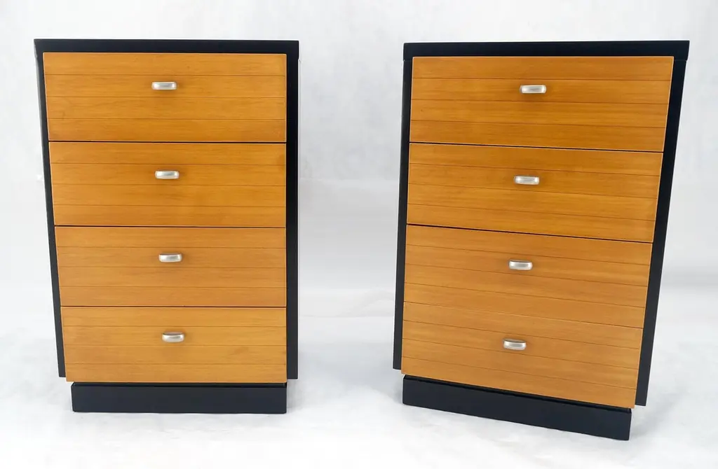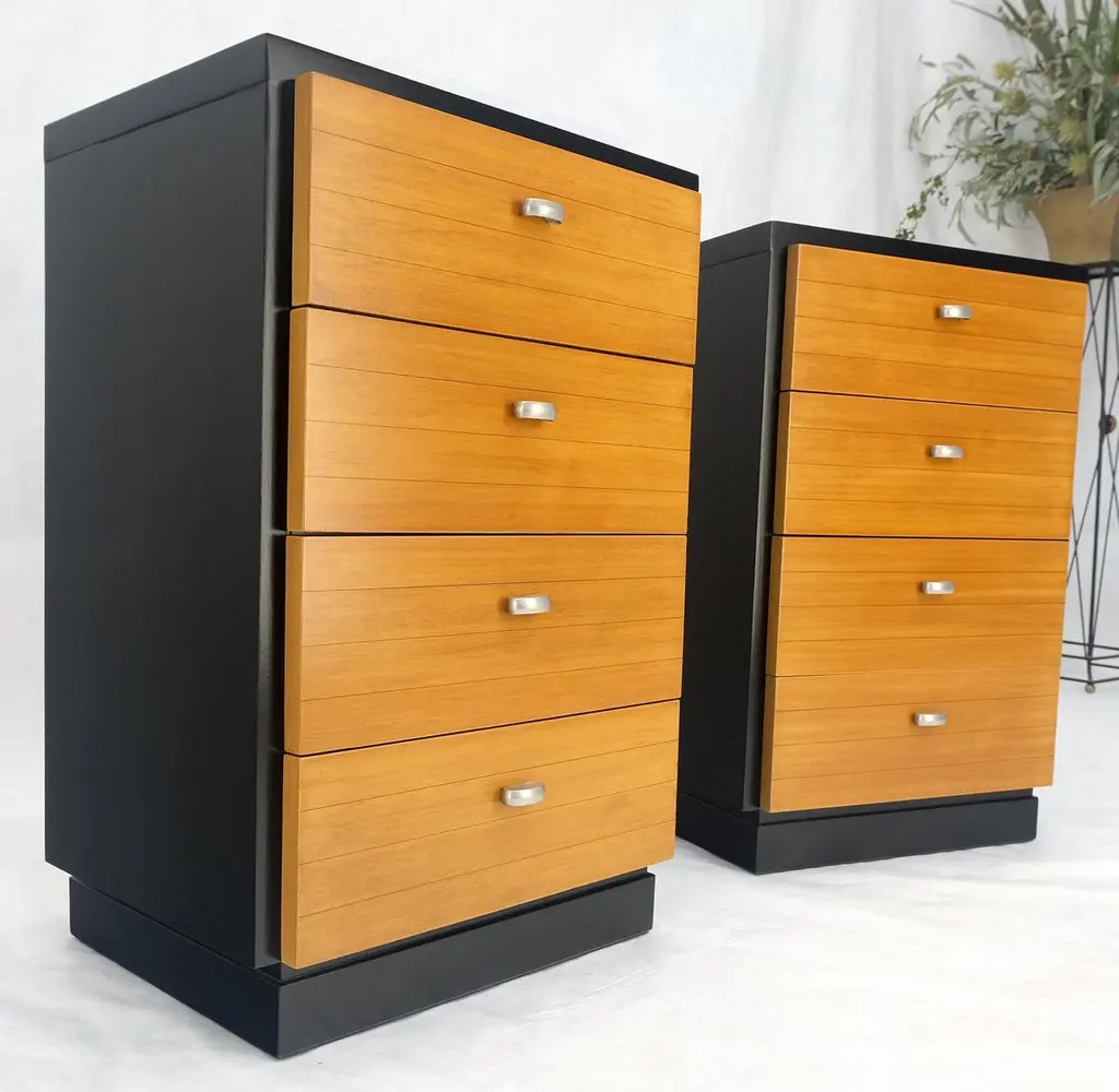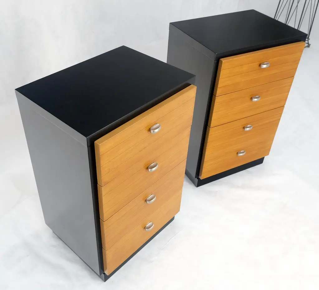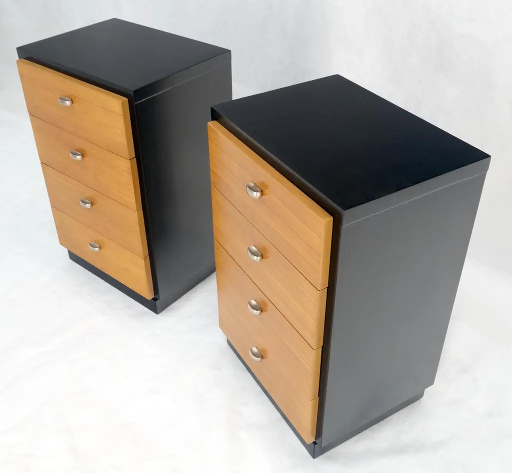 Pair Of 4 Drawers Blond Birch Drawers Black Lacquer Night Stands End Side Tables