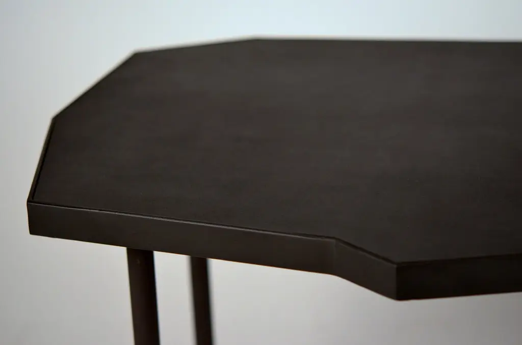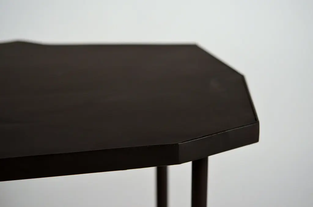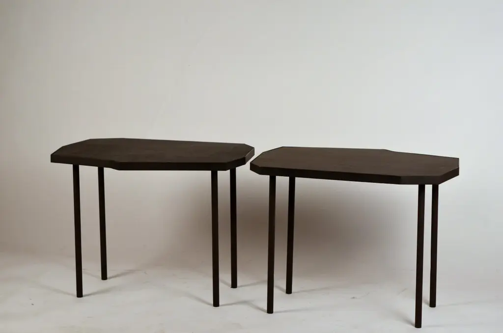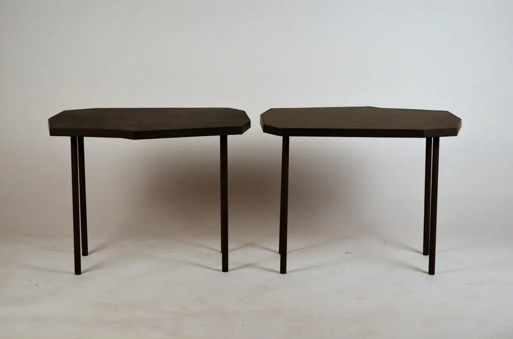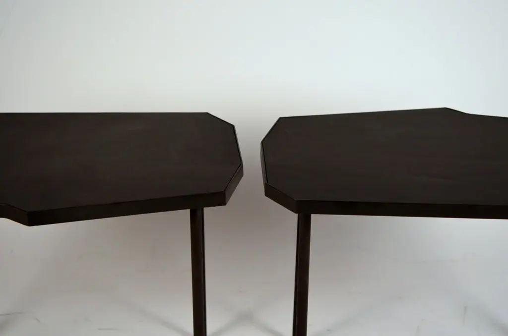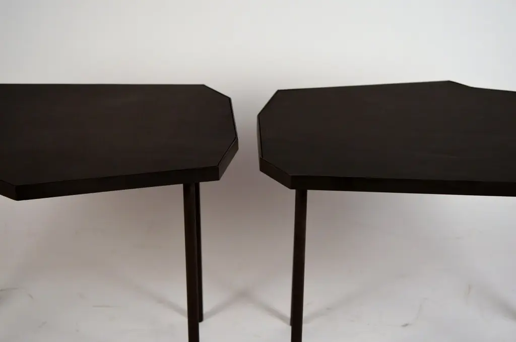 Pair Of Asymmetrical 'Décagone' Black Leather Side Tables By Design Frères