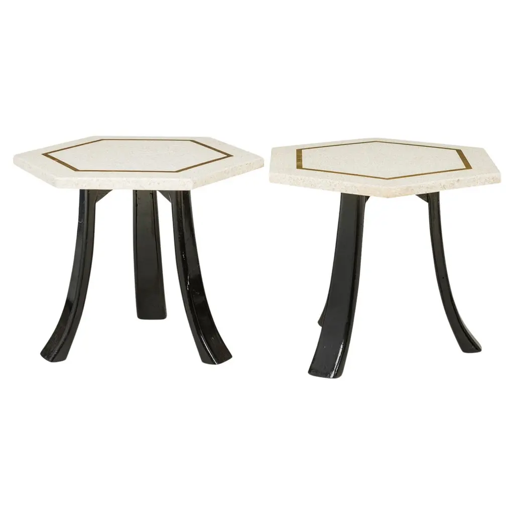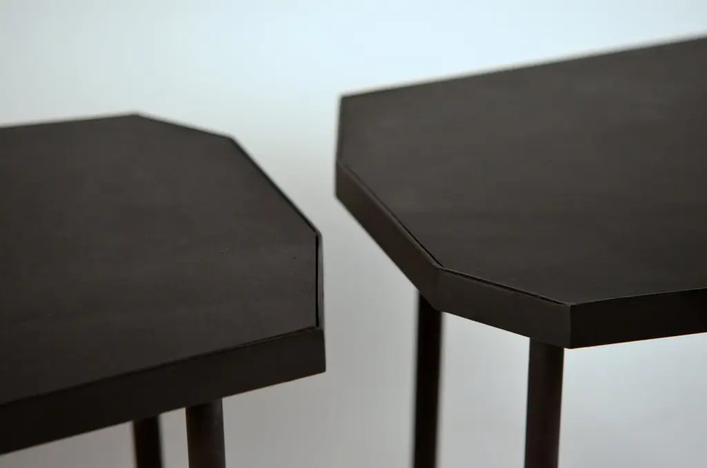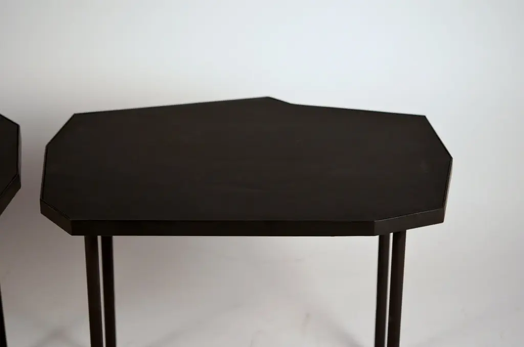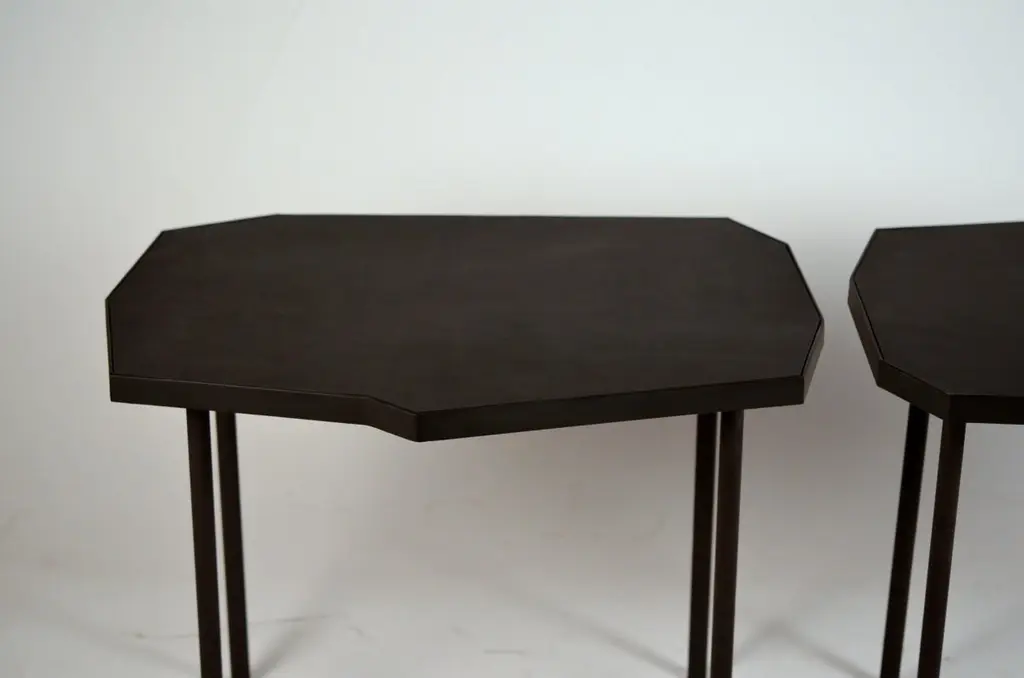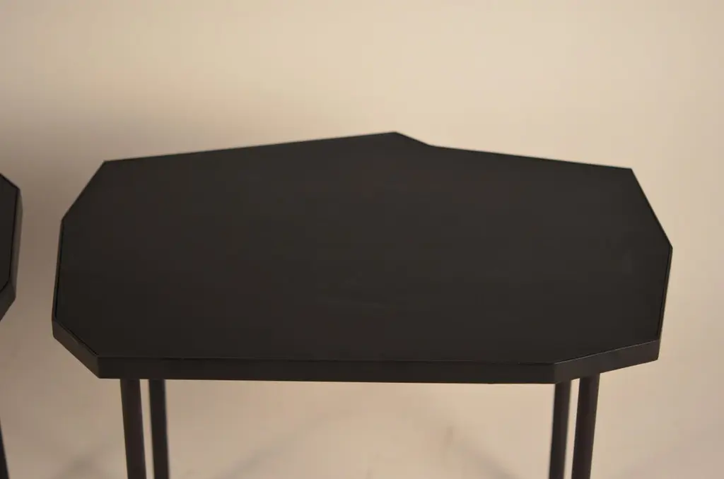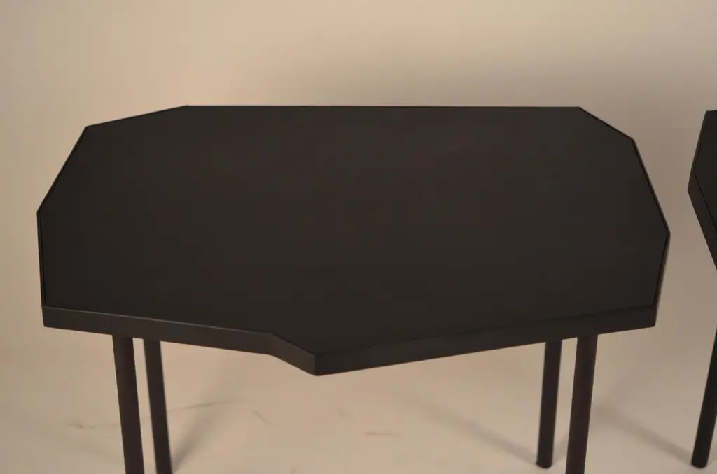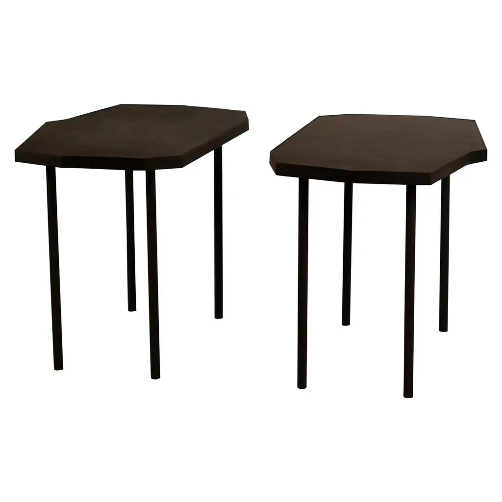 Pair Of Asymmetrical 'Décagone' Black Leather Side Tables By Design Frères