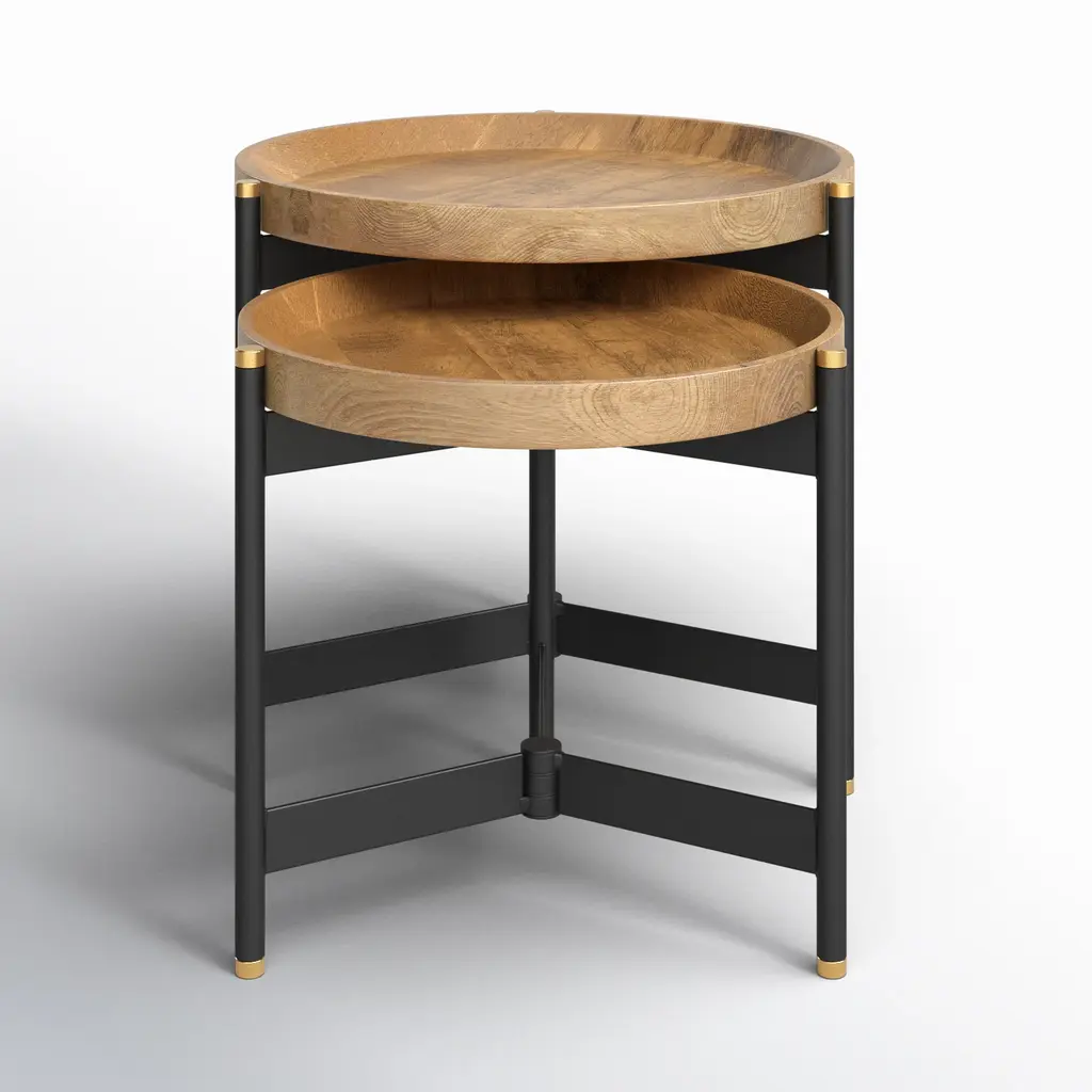 Pair of black & grey triplo table by Mason EditionsDimensions: 54 × 54 × 52.5 cmMaterials: iron, ashColours: total black, total blue, total light grey, blue + coral, black + light grey, light grey + pumpkinThis side table is based on the concept of dissecting a flat rest surface into three different heights, to obtain three tops. Made from highly impacting materials, yet lightweight in its construction, the resulting side table has three solid wood tops supported by a slender structure consisting of three steel rods. Versatile, functional and fun, Triplo is available in different colour combinations.Mason Editions is an Italian company specialized in the production of design furniture, lighting solutions, and accent pieces. Born from the lifelong passion for lighting and entrepreneurial spirit of Fabio and his partner Silvia, Mason Editions places itself halfway between fine art and exquisite craftsmanship. A collection of lighting, design objects, and furnishing accessories, signed by artists Serena Confalonieri, Martina Bartoli, and Matteo Fiorini, head of the creative direction. Mason Editions comes from the experience of an Italian lighting company placed in the Veneto region. This new brand of furniture elements was born from the meeting between the entrepreneur Fabio Mason and three international designers who designed the first collection for a sophisticated public. Therefore the collection wants to be eclectic and timeless. The material contrast and fresh design, with essential shapes, mark the mason editions collection. In conclusion, the elegant Italian sign highlights proposals suitable for all environments. Mason editions is a set of experiences, artisans, and productive know-how that creates a capable system.