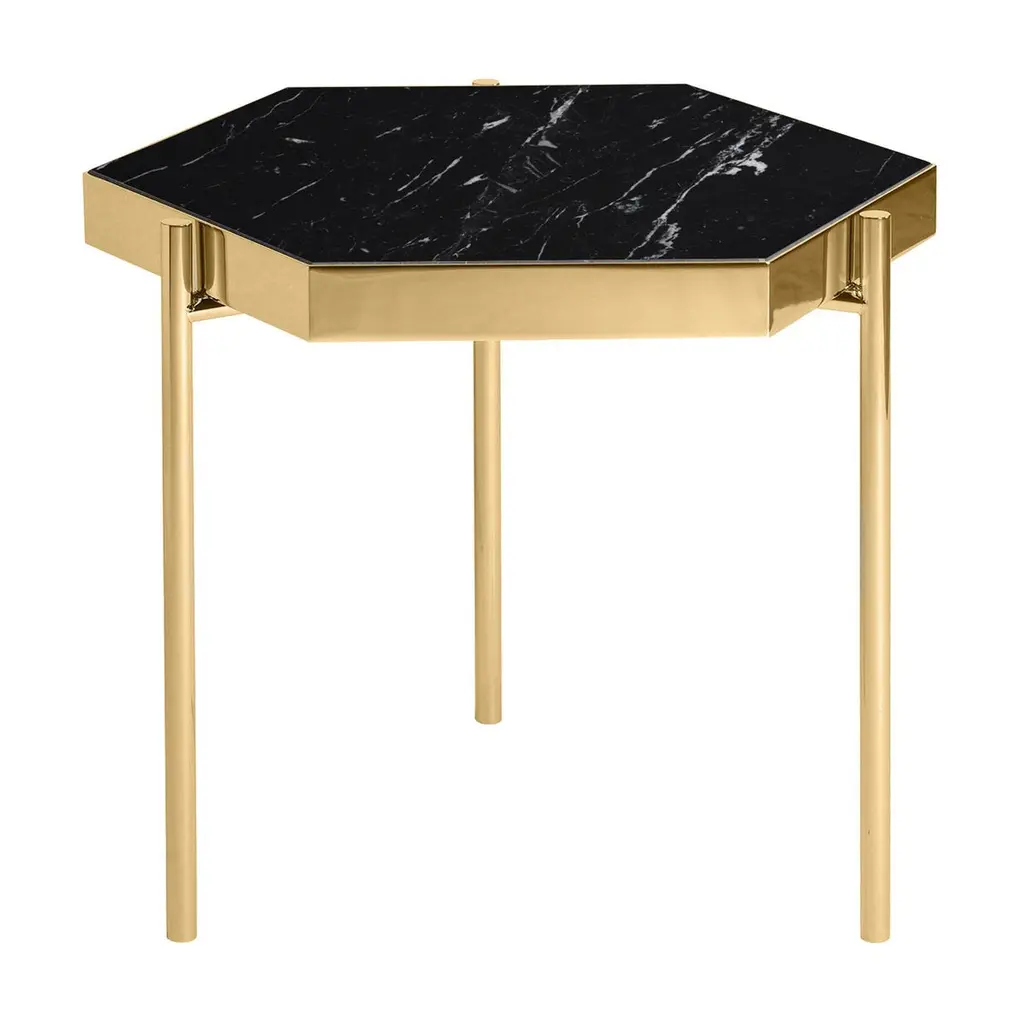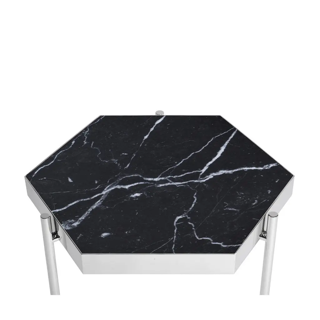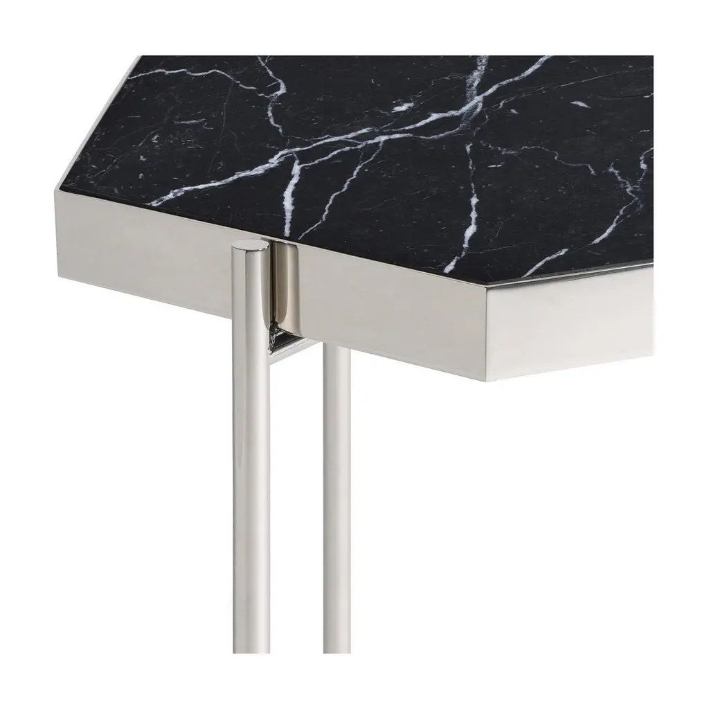 Pair Of Black Marble Staineless Steel Side Hexagonal Tables