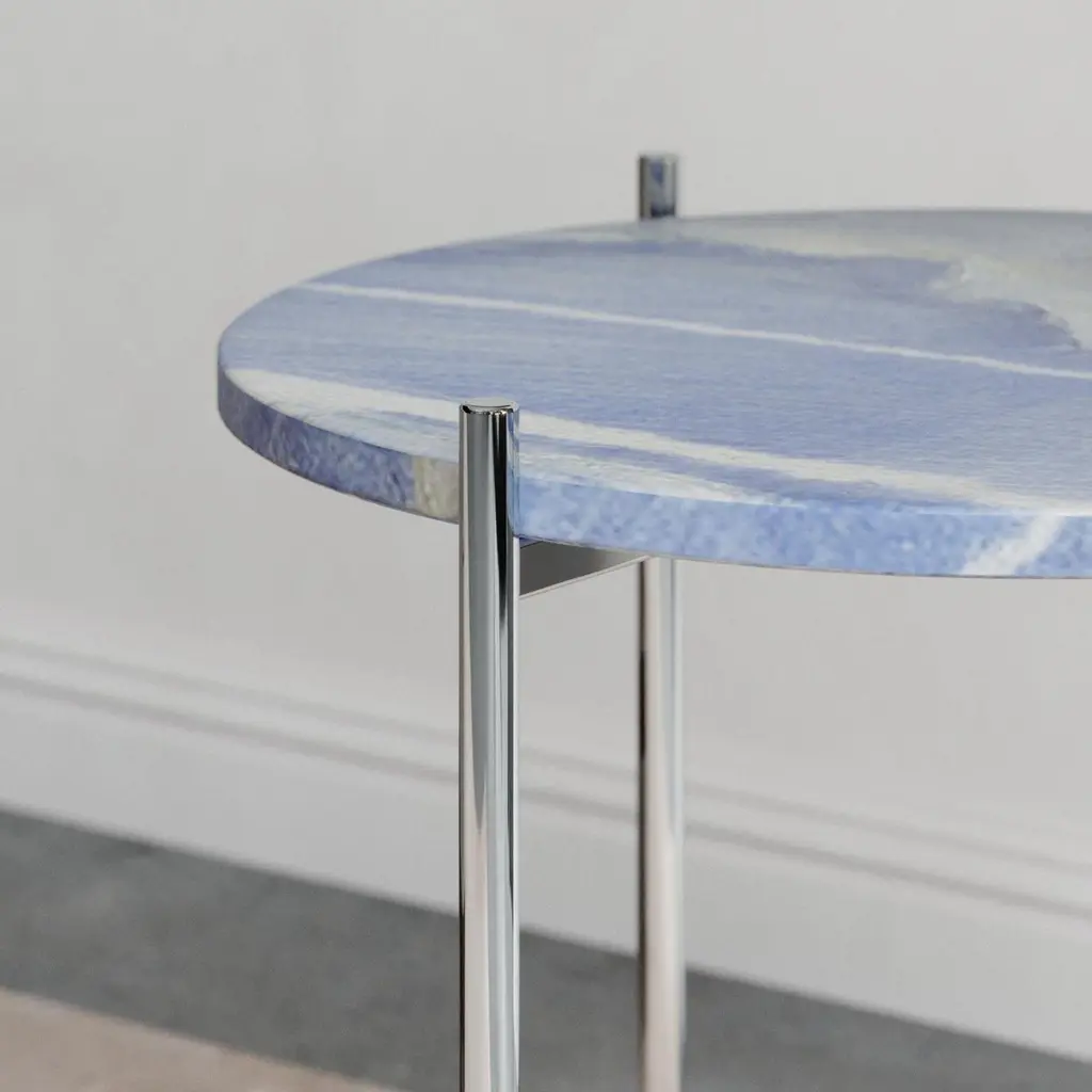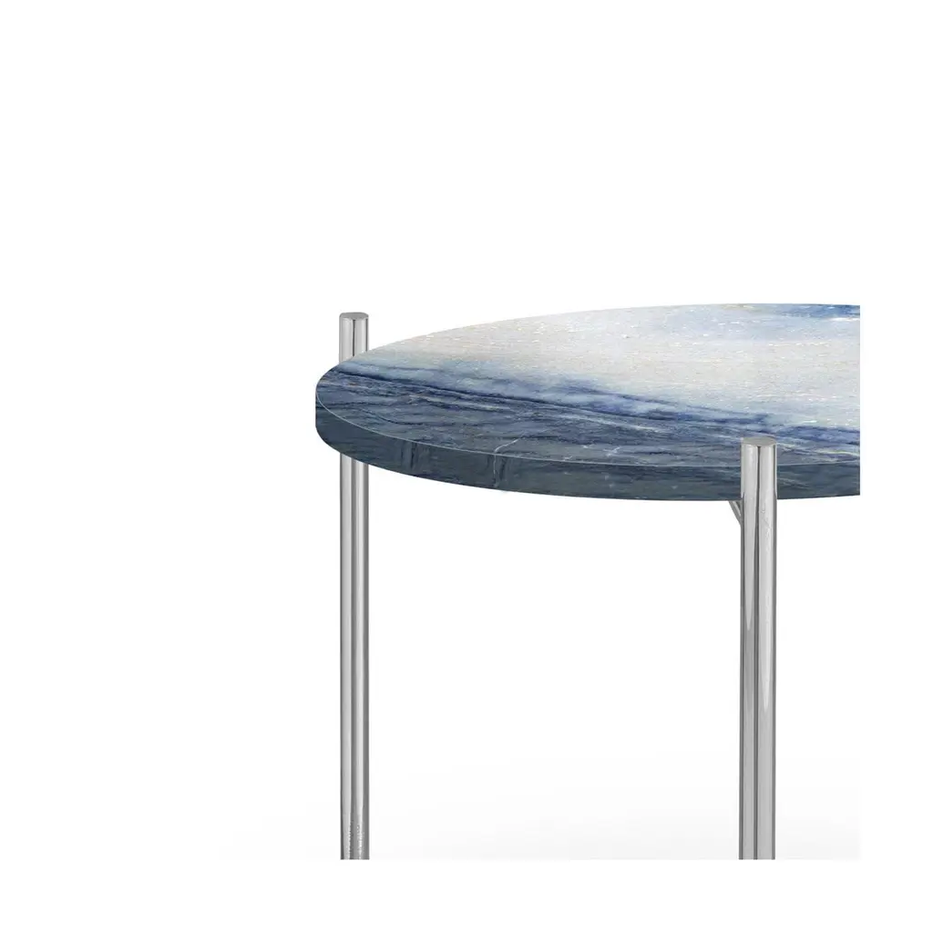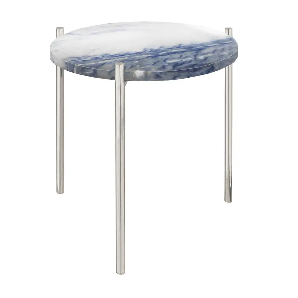 Pair Of Blue White Marble Stainless Steel Side Tables