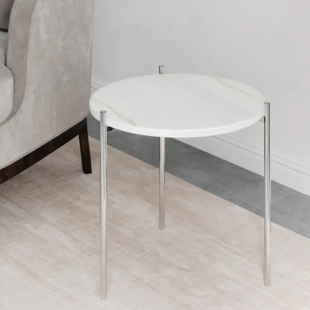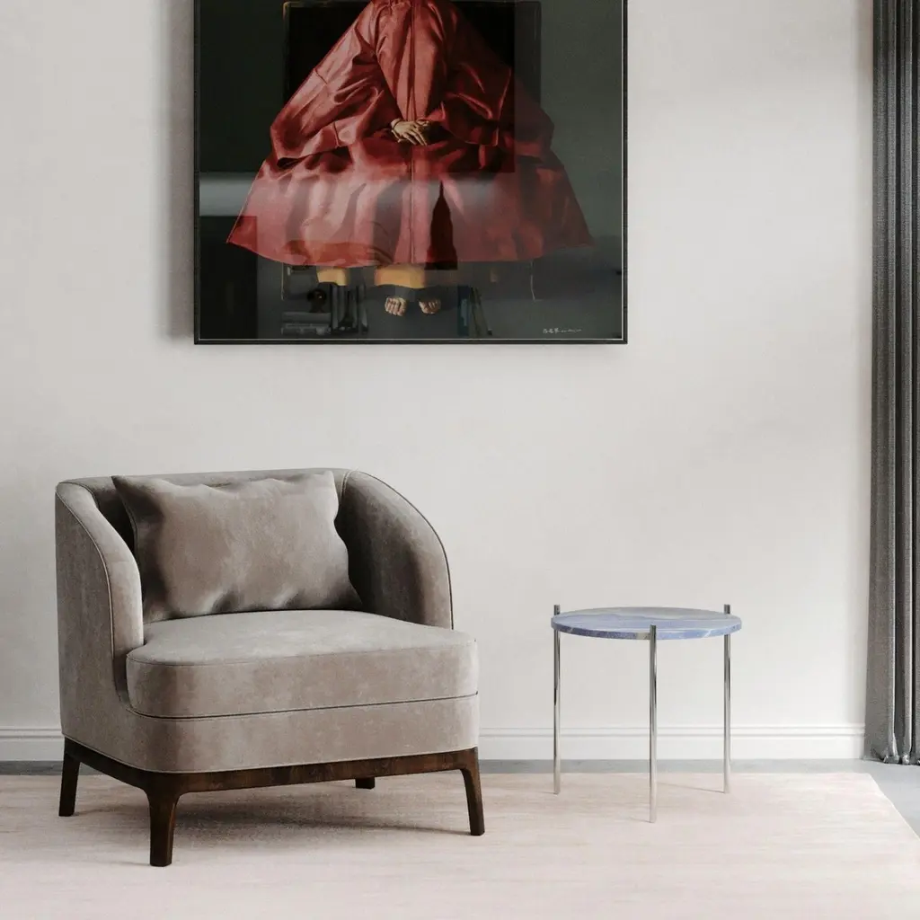 These simple, geometrically shaped table tops are inspired by the work of Wassily Kandinsky. It combines four different marble tops with two different structures. A full thin metal structure with titanium gold or stainless steel is available as well as an acrylic sheet combined with thick metal foot in titanium gold or stainless steel. In every option, it looks like the table top is floating as the structure always gives the feeling of lightness.Priced and sold by 2 minimun or more.20 kilos.