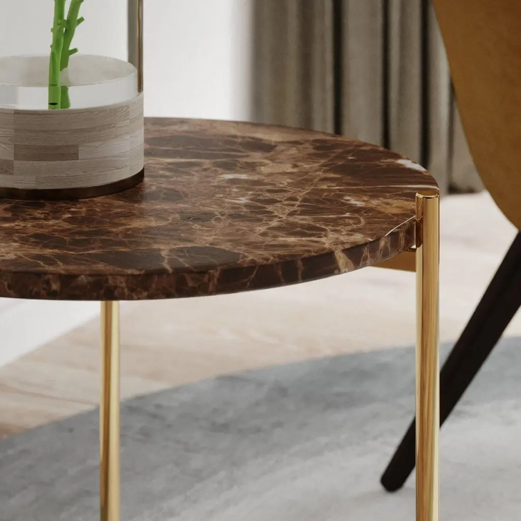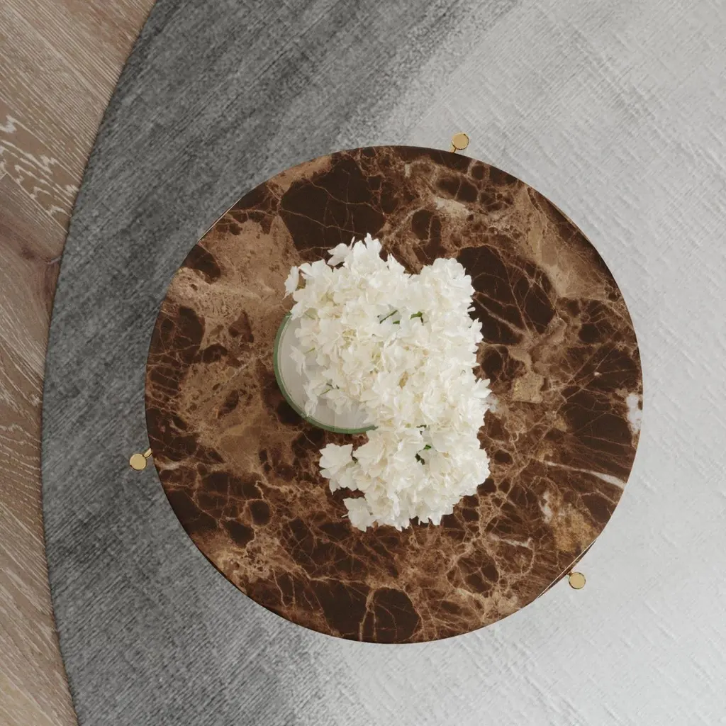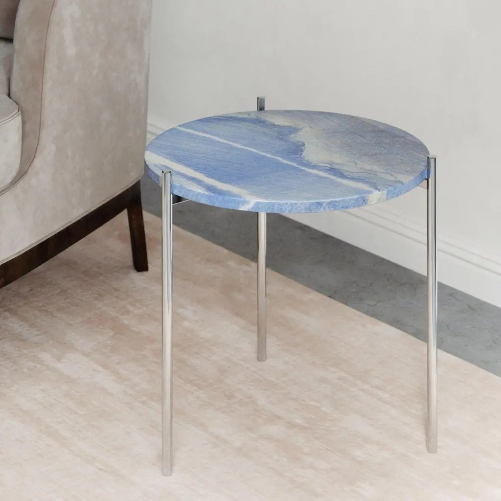 These simple, geometrically shaped table tops are inspired by the work of Wassily Kandinsky. It combines four different marble tops with two different structures. A full thin metal structure with titanium gold or stainless steel is available as well as an acrylic sheet combined with thick metal foot in titanium gold or stainless steel. In every option, it looks like the table top is floating as the structure always gives the feeling of lightness.Priced and sold by 2 minimun or more.20 kilos.