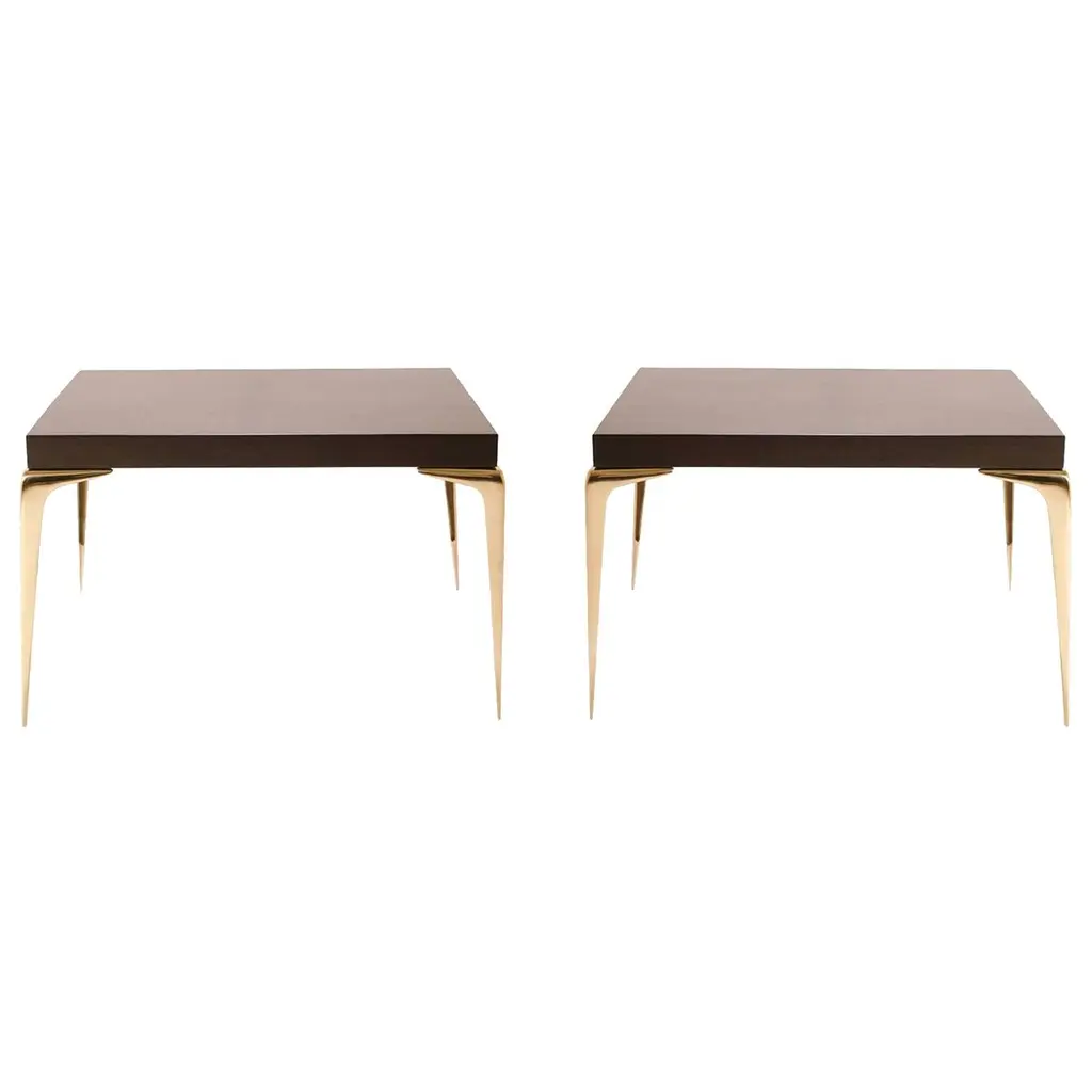Pair Of Chic 'Caisson' Solid Brass And Black Lacquer End Tables By Design Frères