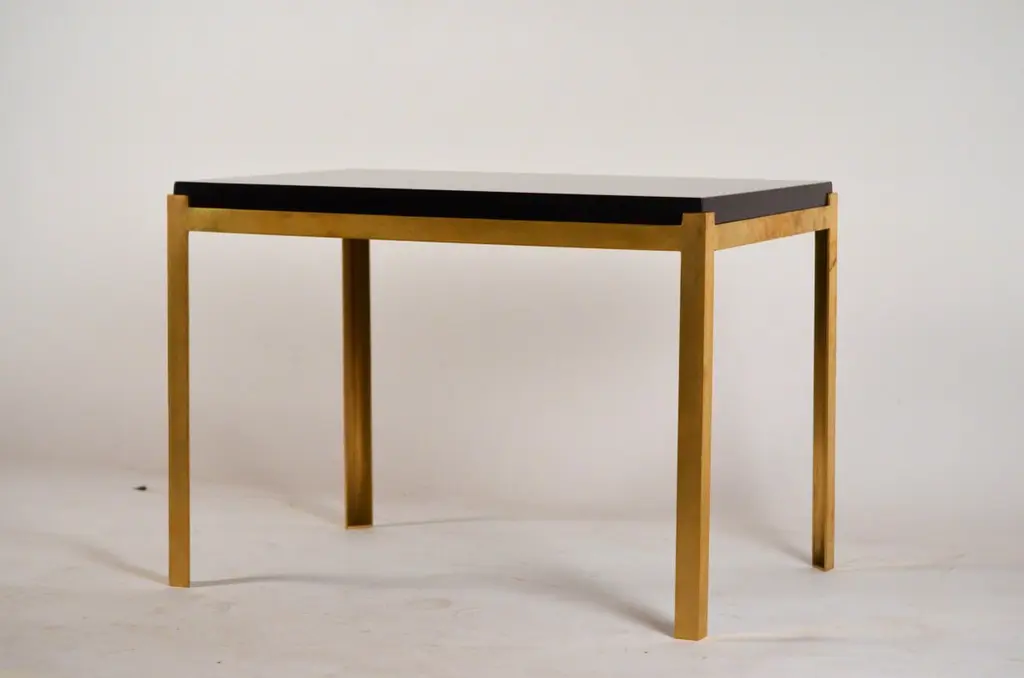 Pair Of Chic 'Caisson' Solid Brass And Black Lacquer End Tables By Design Frères