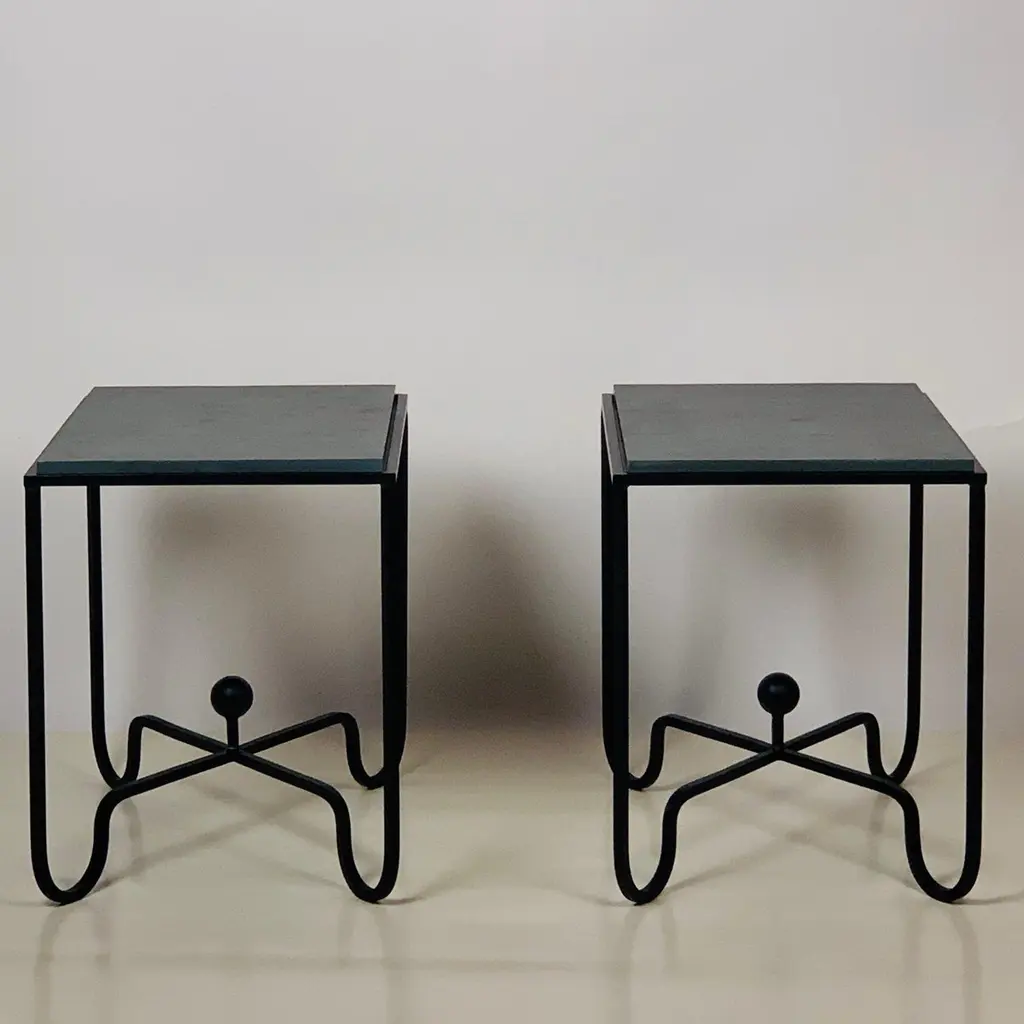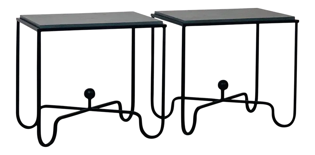 Pair Of Chic Grey Slate 'Entretoise' Side Tables By Design Frères