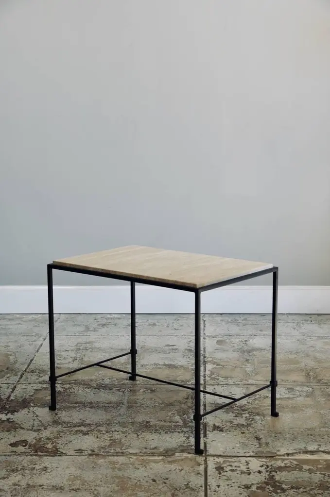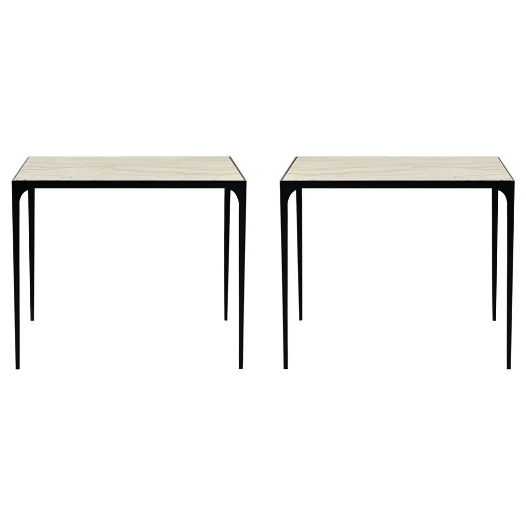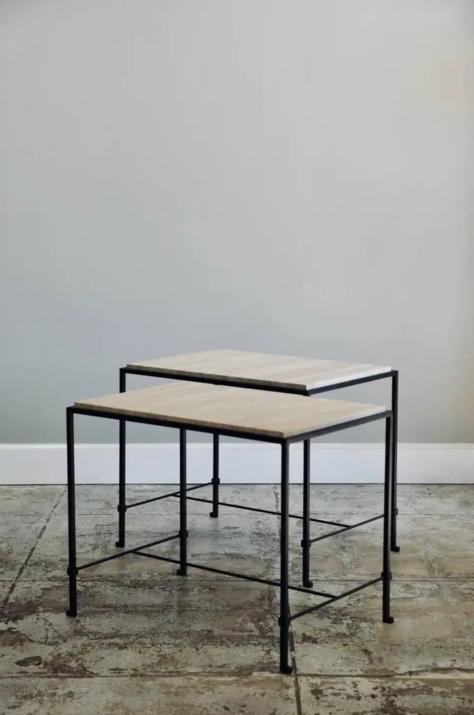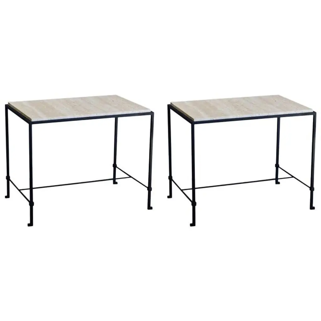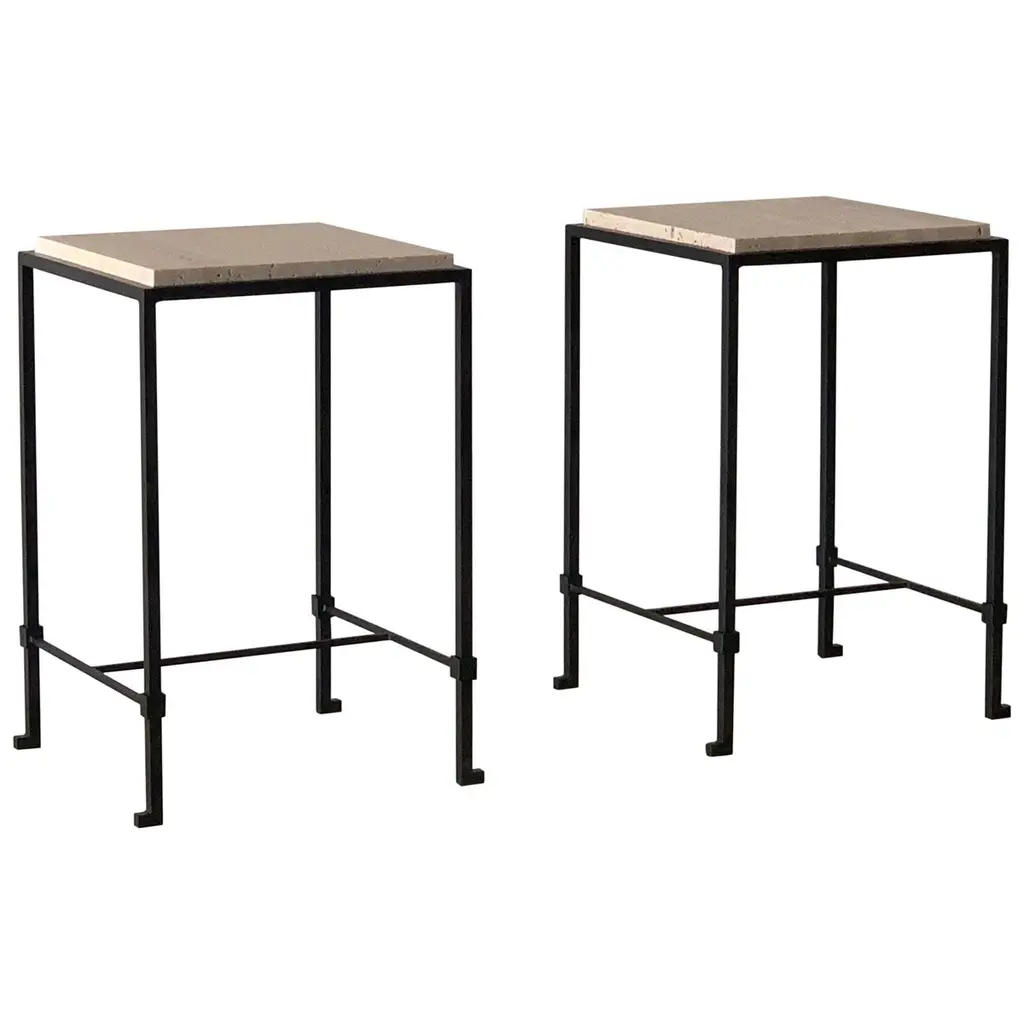 Pair Of 'Diagramme' Wrought Iron And Travertine Side Tables By Design Frères