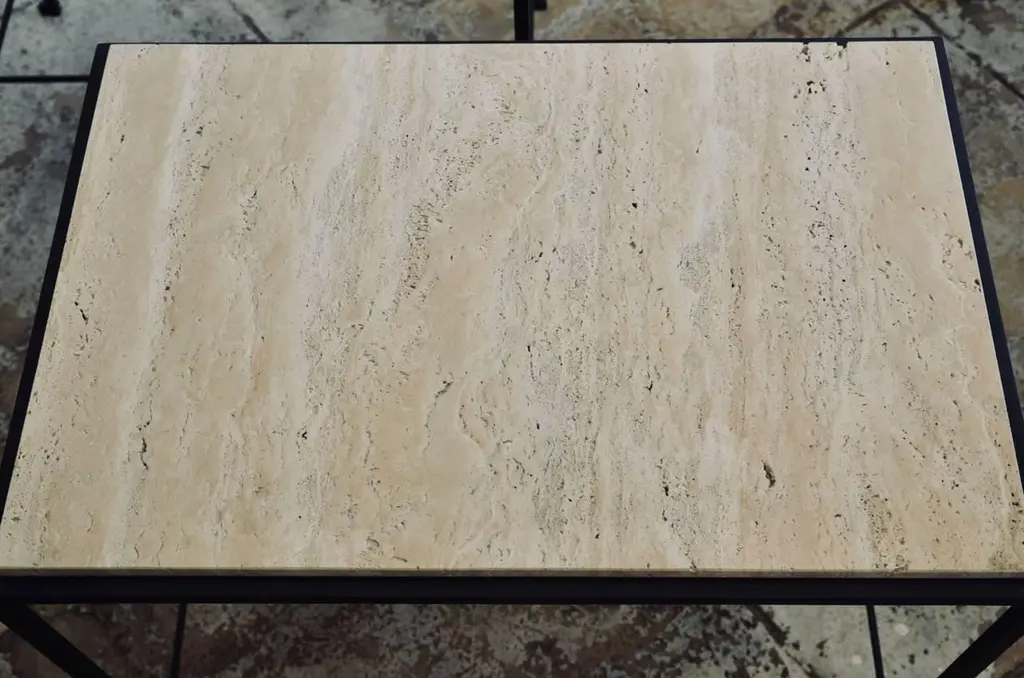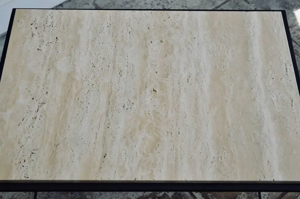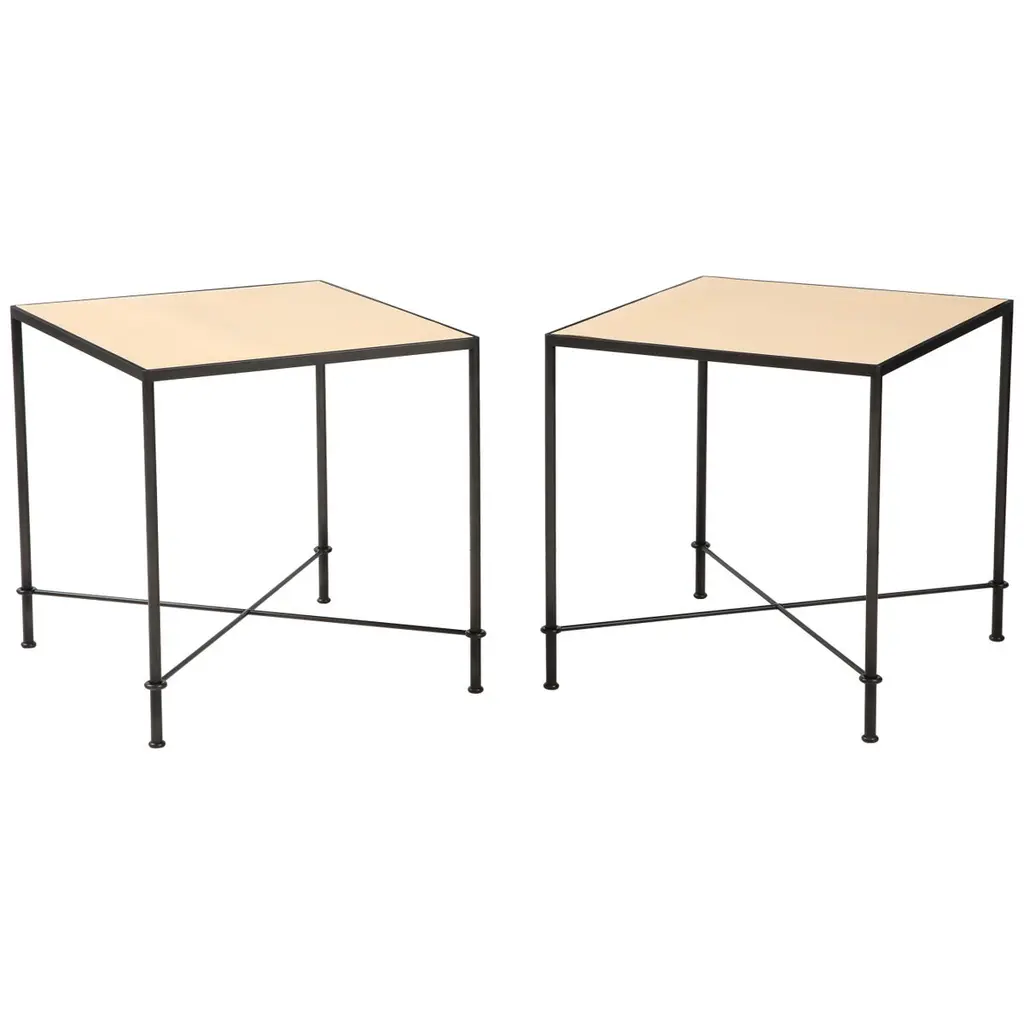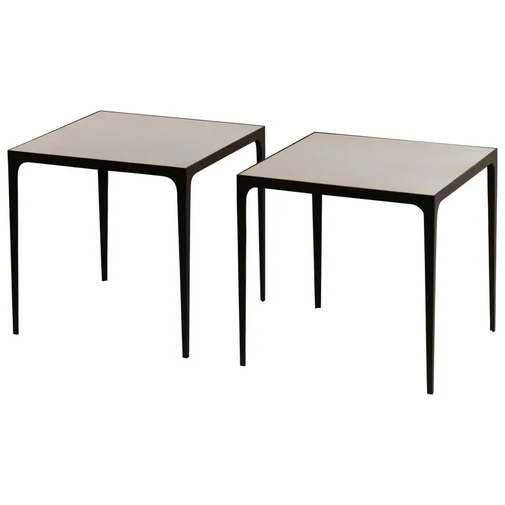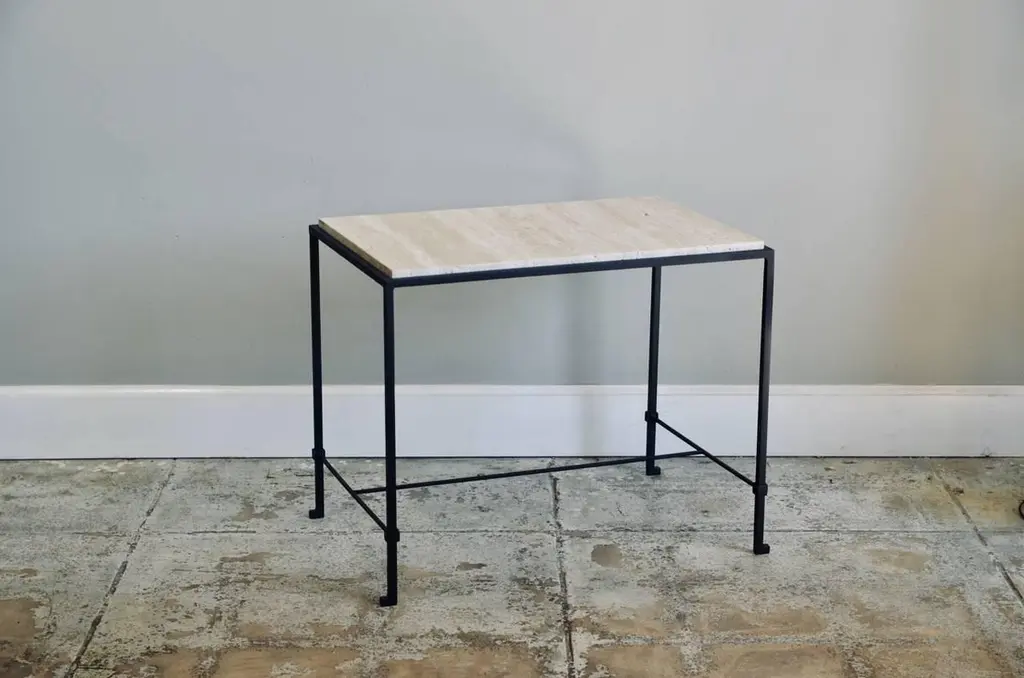 Pair Of 'Diagramme' Wrought Iron And Travertine Side Tables By Design Frères