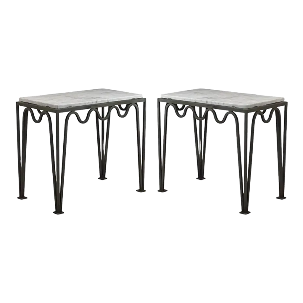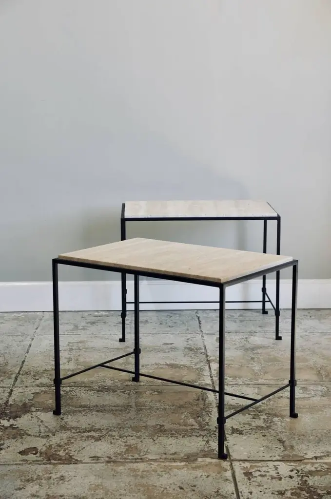 Pair Of 'Diagramme' Wrought Iron And Travertine Side Tables By Design Frères