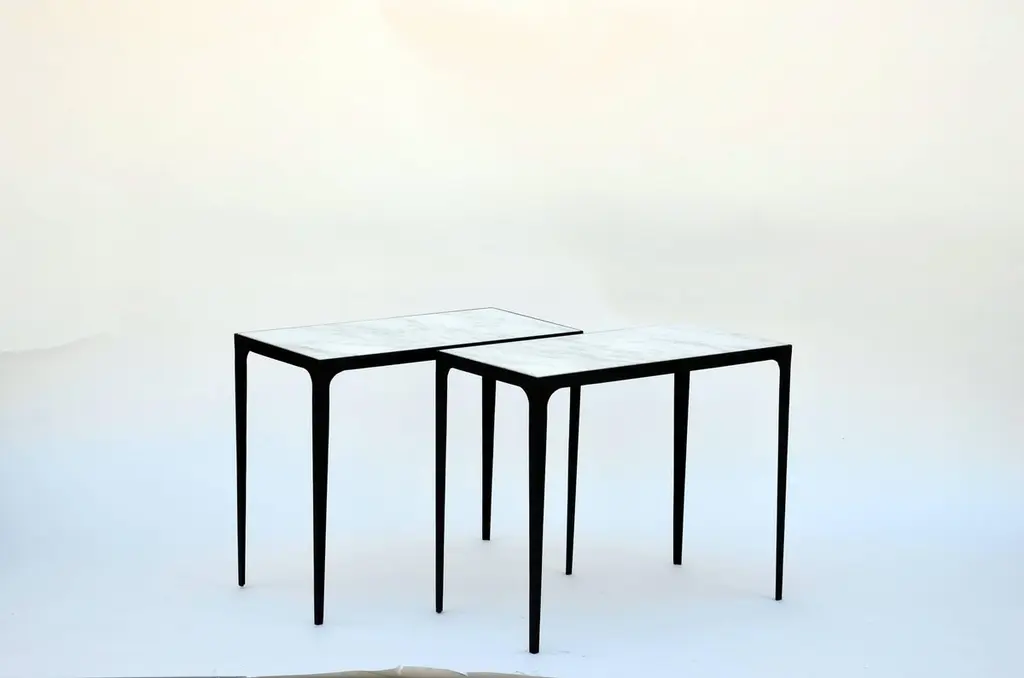 Pair Of 'Esquisse' Wrought Iron And Marble Side Tables By Design Frères