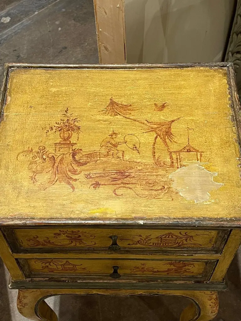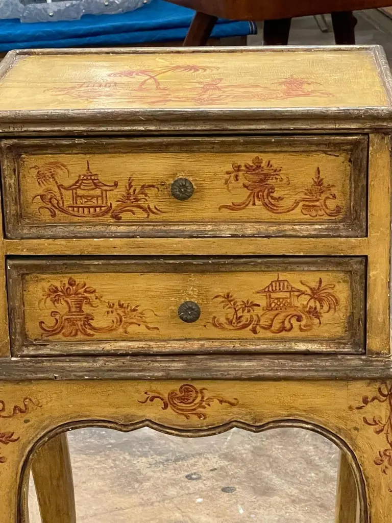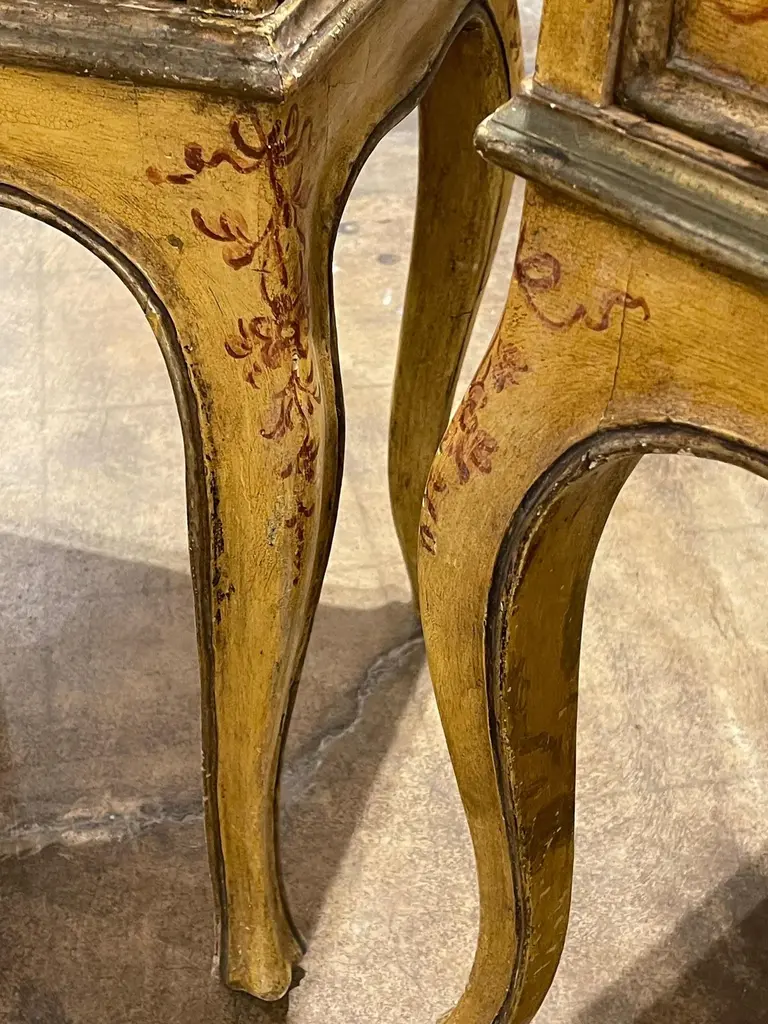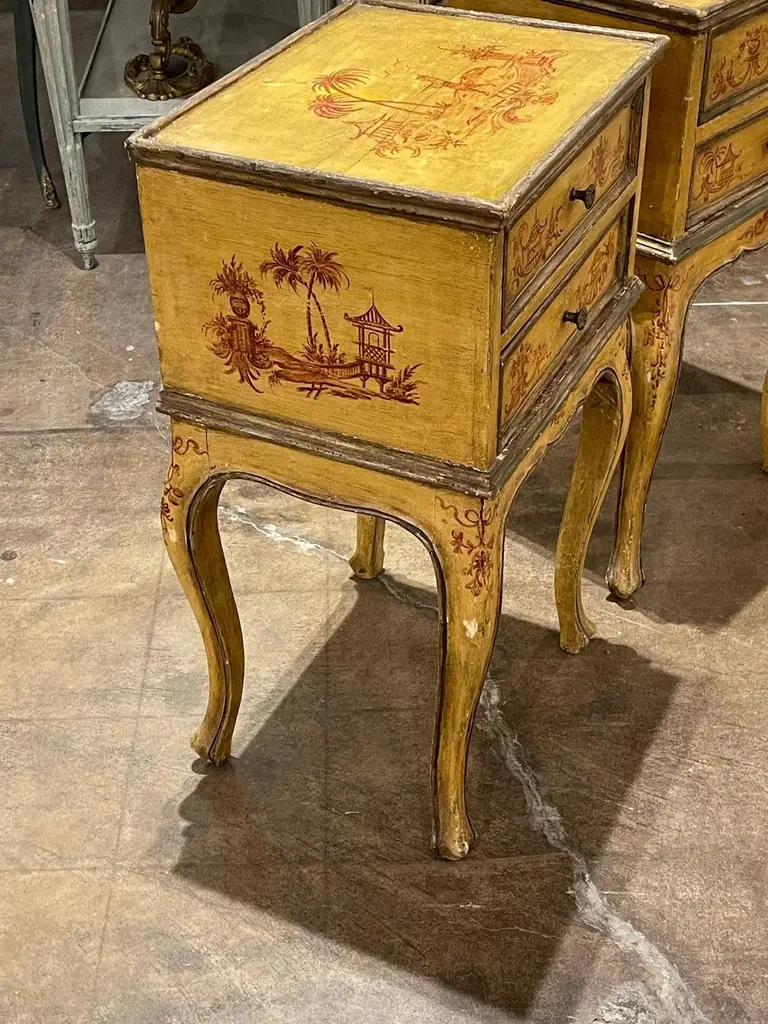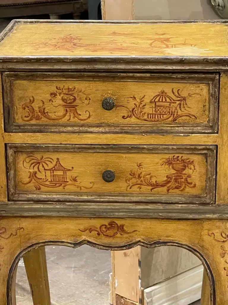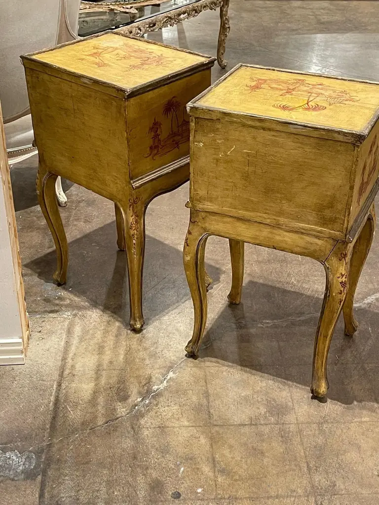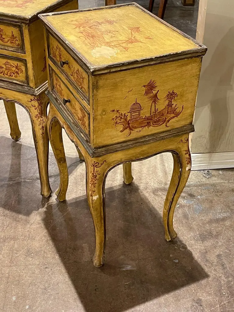 Pair of antique Italian painted Chinoiserie side tables, Circa 1910. The side tables have a beautiful patina. The perfect accent for any room.