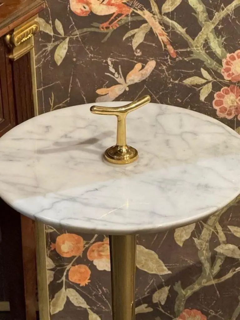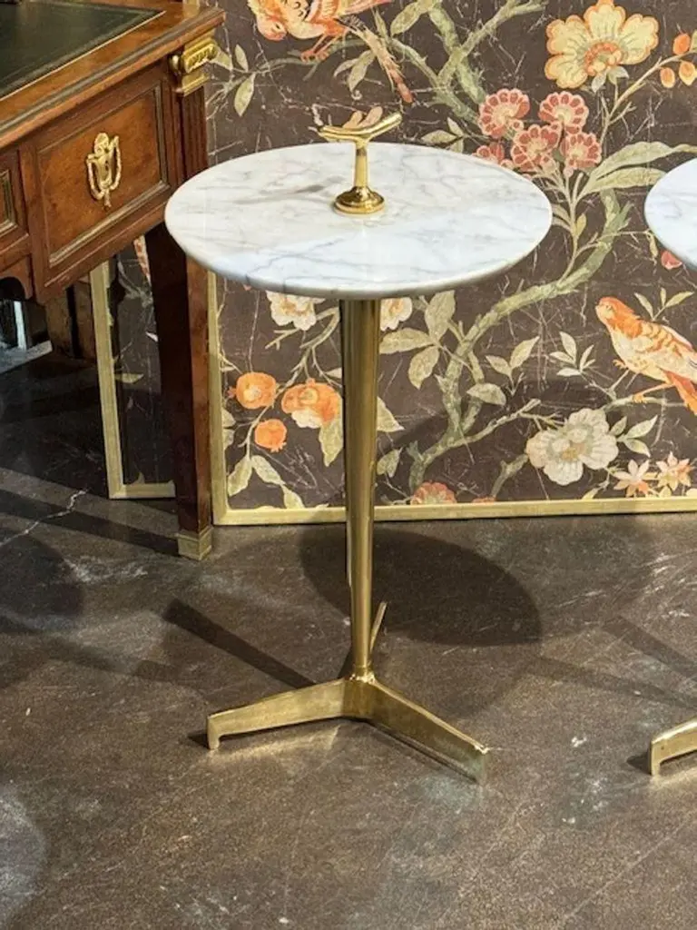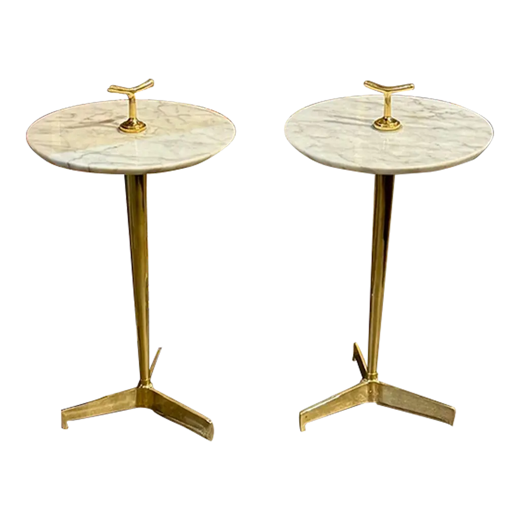 Pair Of Italian Designer Brass And Carrara Marble Drink Tables