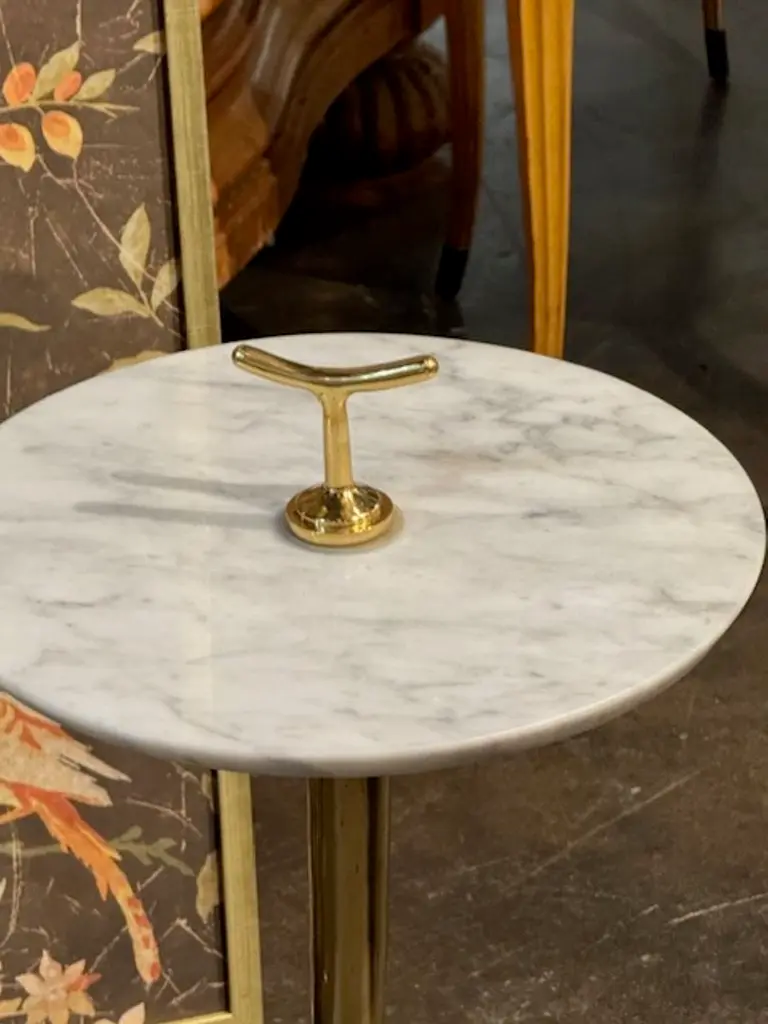 Pair Of Italian Designer Brass And Carrara Marble Drink Tables