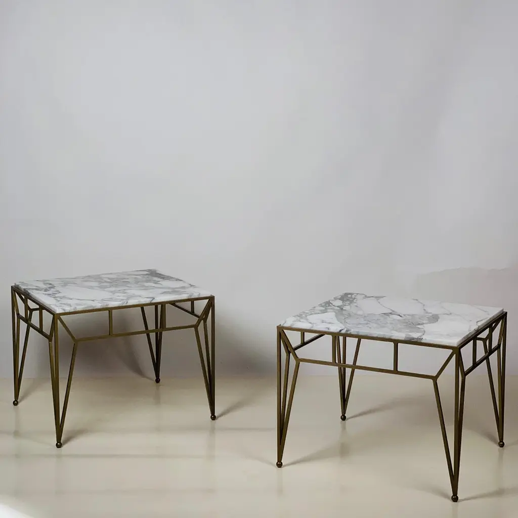Pair Of Large 'Angulaire' Marble Side Or End Tables By Design Frères