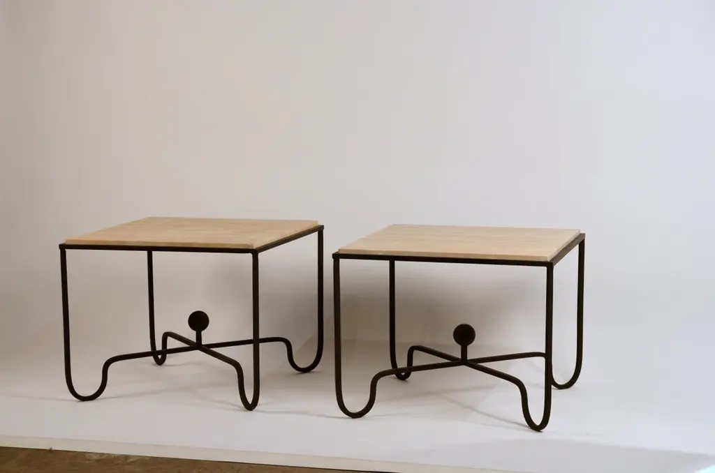 Pair Of Large 'Entretoise' Cream Travertine Side Tables By Design Freres
