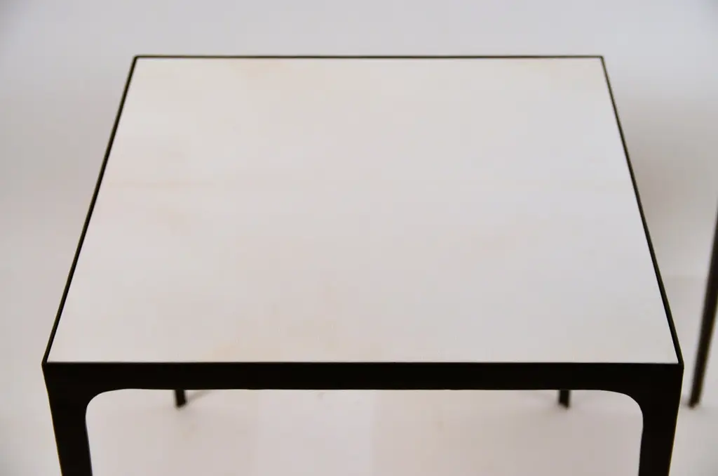 Pair Of Large 'Esquisse' Wrought Iron And Parchment Side Tables By Design Frères