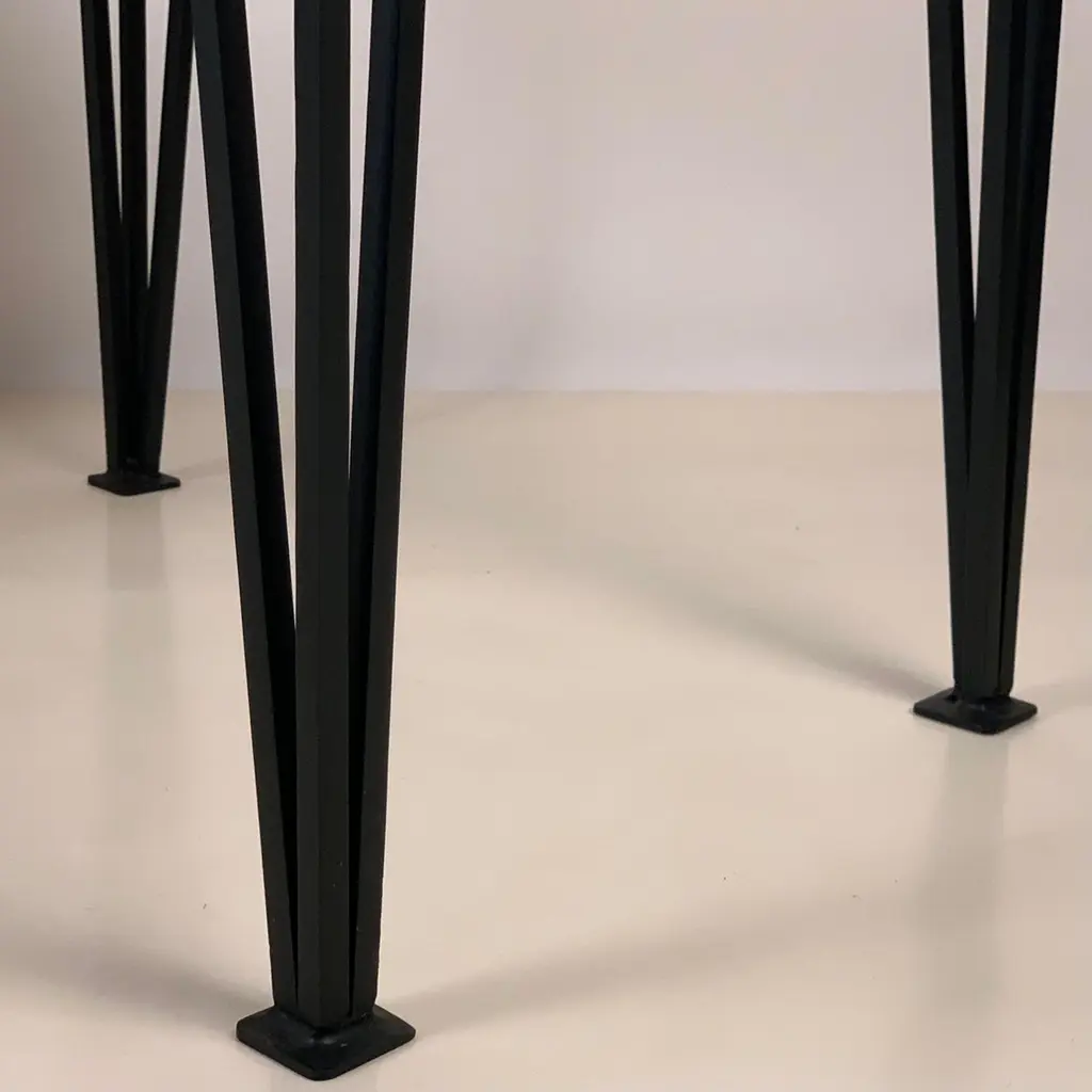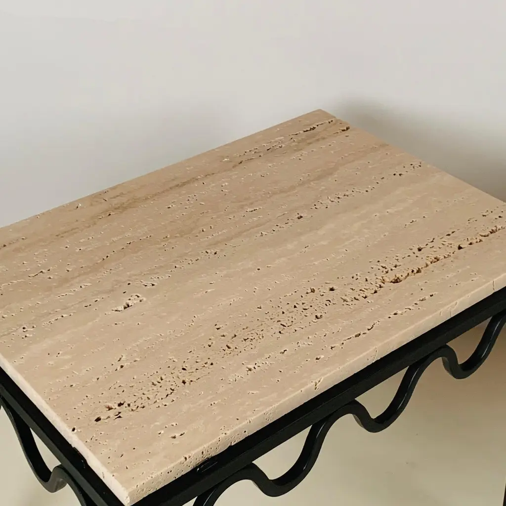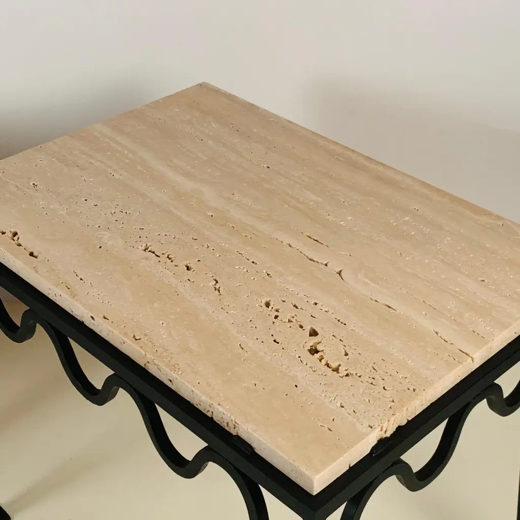Sturdy powder coated frames fitted with Italian travertine tops. Inspired by the timeless aesthetic of French modern design, these side tables from our exclusive design Frères line are handmade in our Los Angeles atelier by our skilled artisans. These classic, understated pieces will blend in, structure and enhance any space.