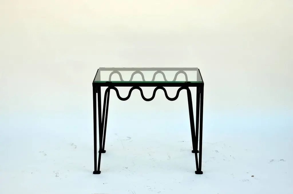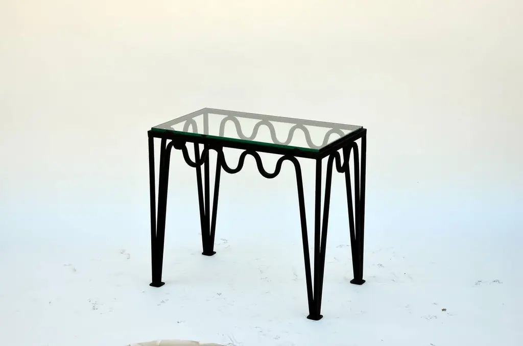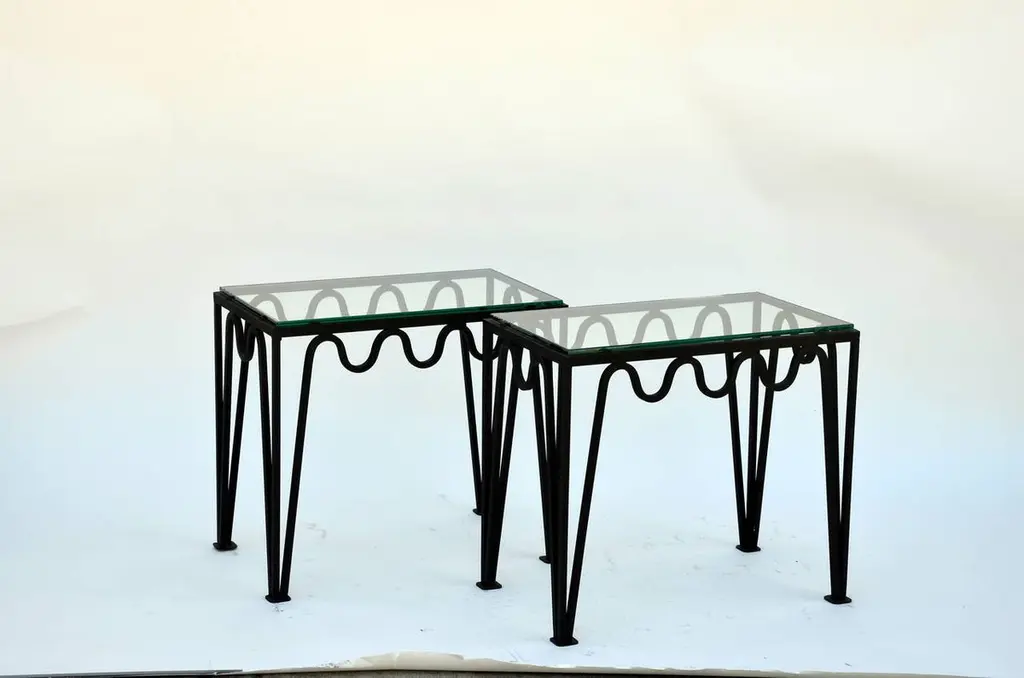 Pair Of 'Méandre' Blackened Steel And Glass Side Tables By Design Frères