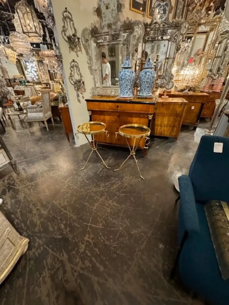 Elegant pair of modern brass drink tables after Jean Michael Frank. Makes a beautiful statement!!