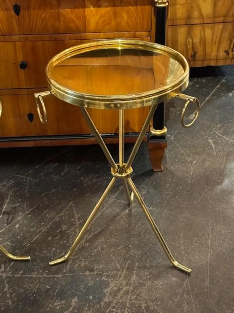 Pair Of Modern Brass Drink Tables After Jean Michael Frank