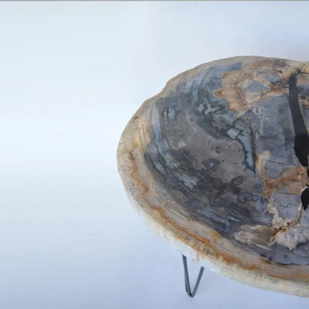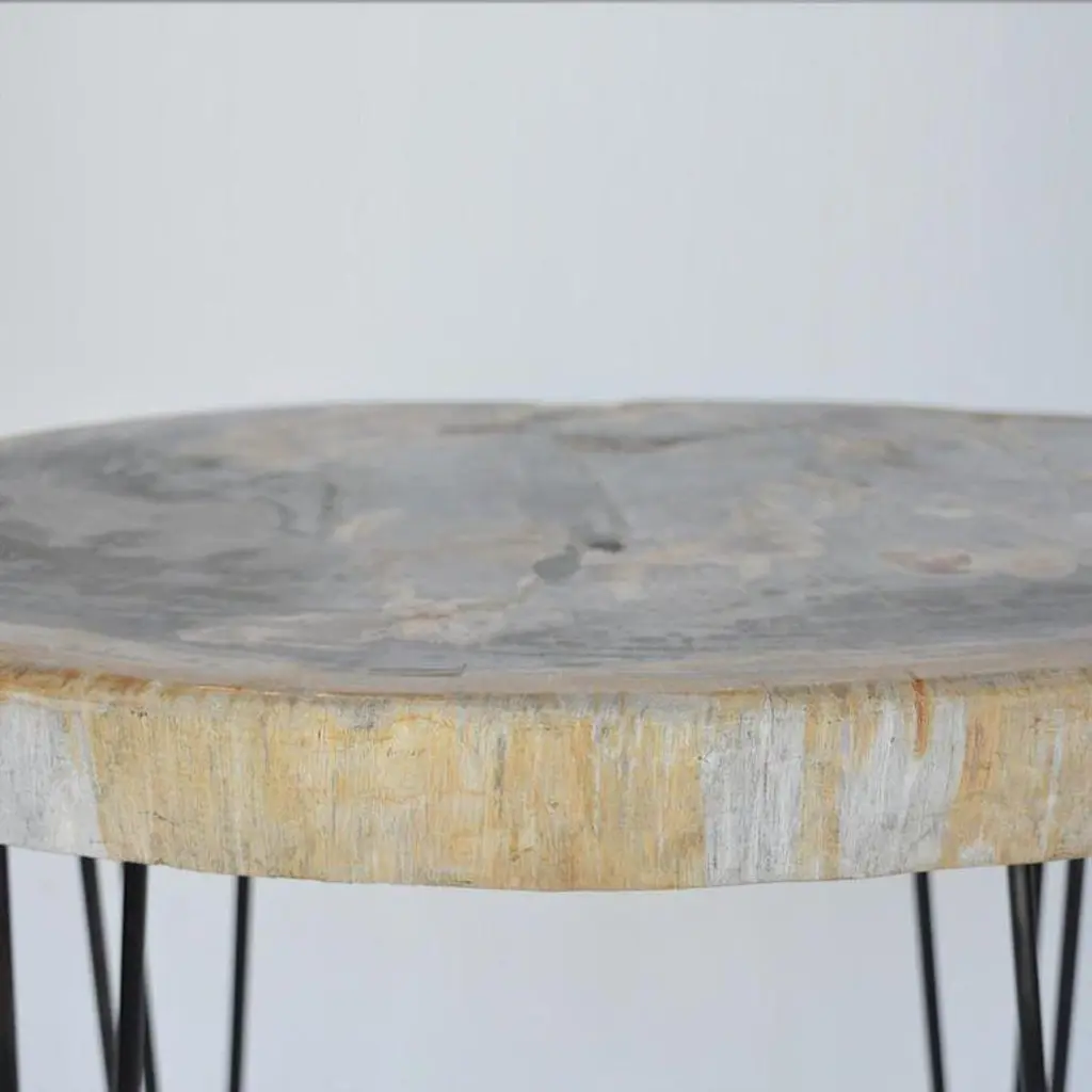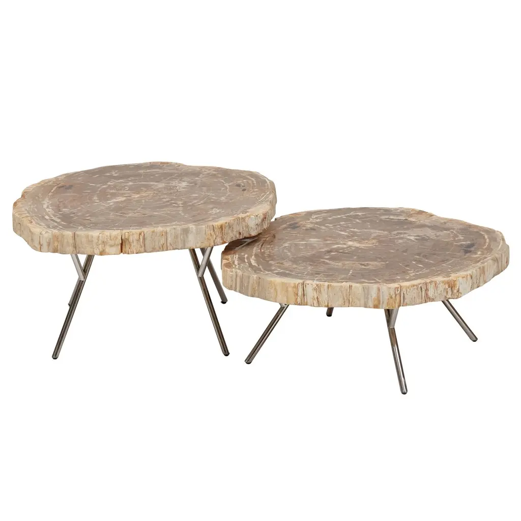 Pair Of Petrified Wood Side Tables With Iron Feet, Late 20th Century