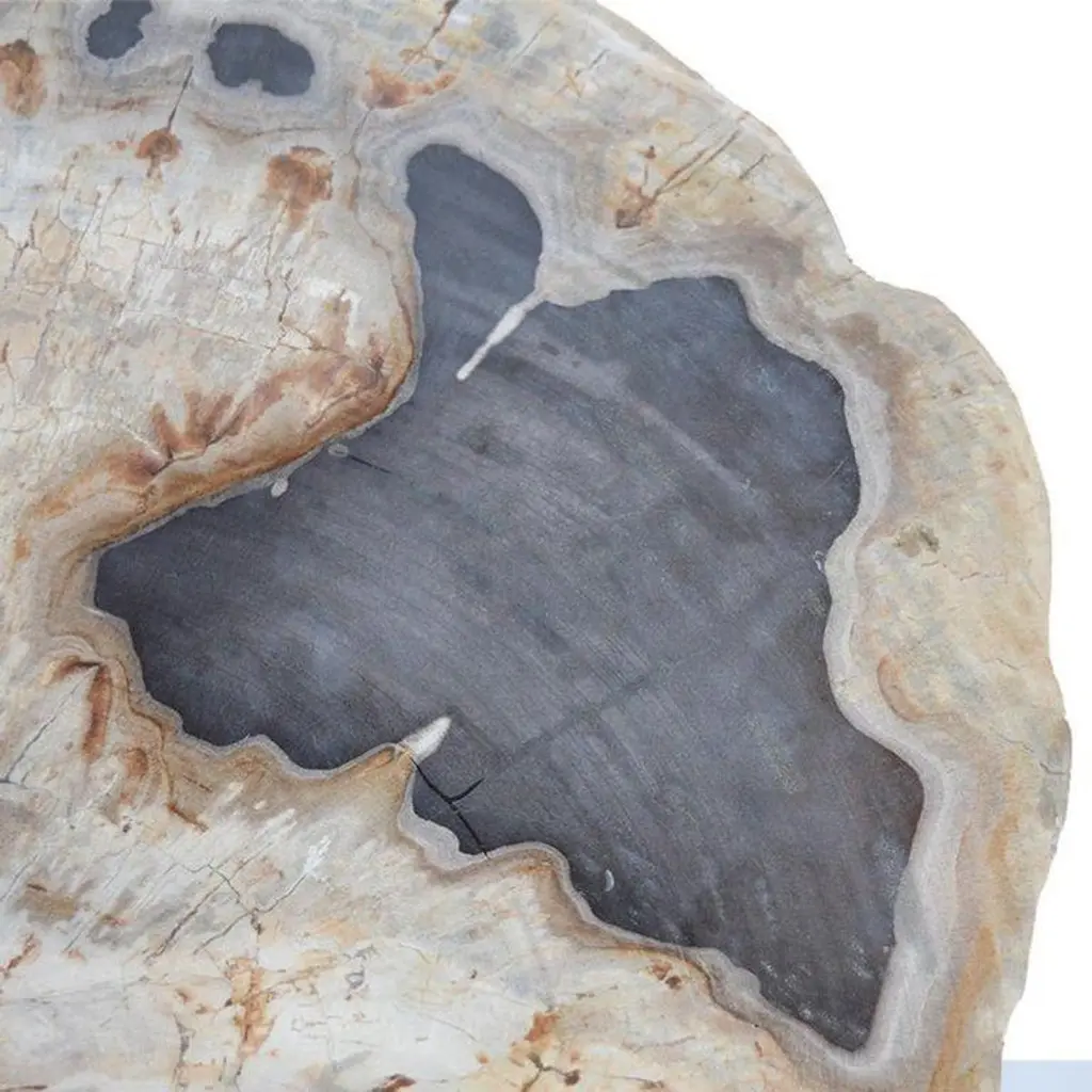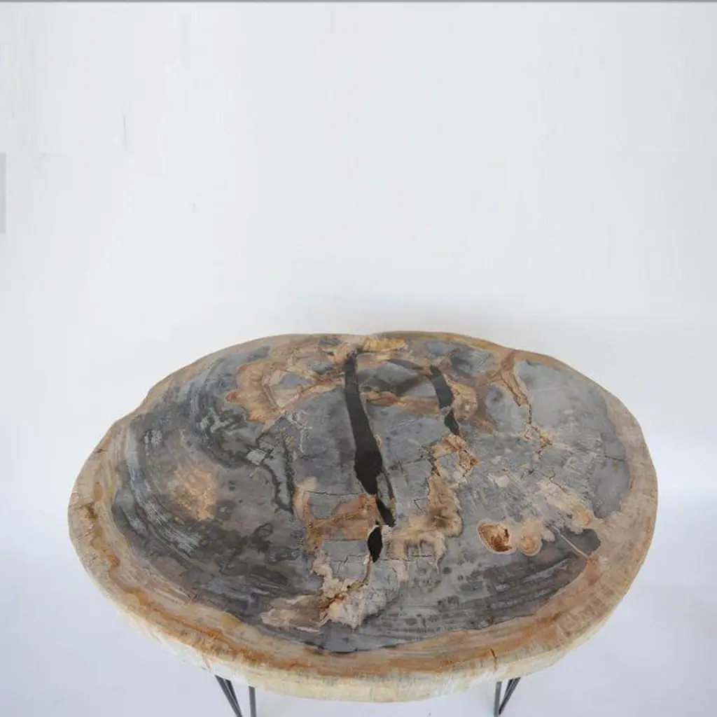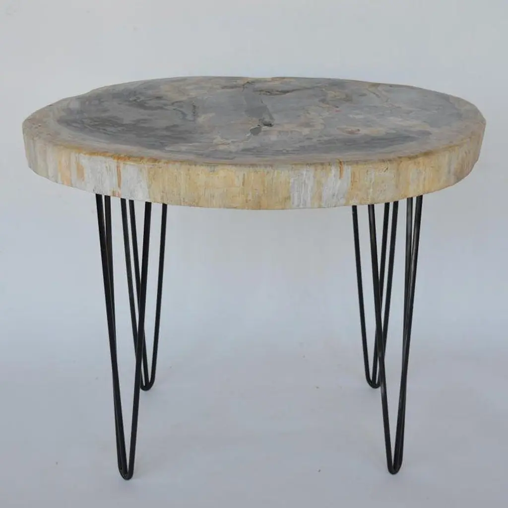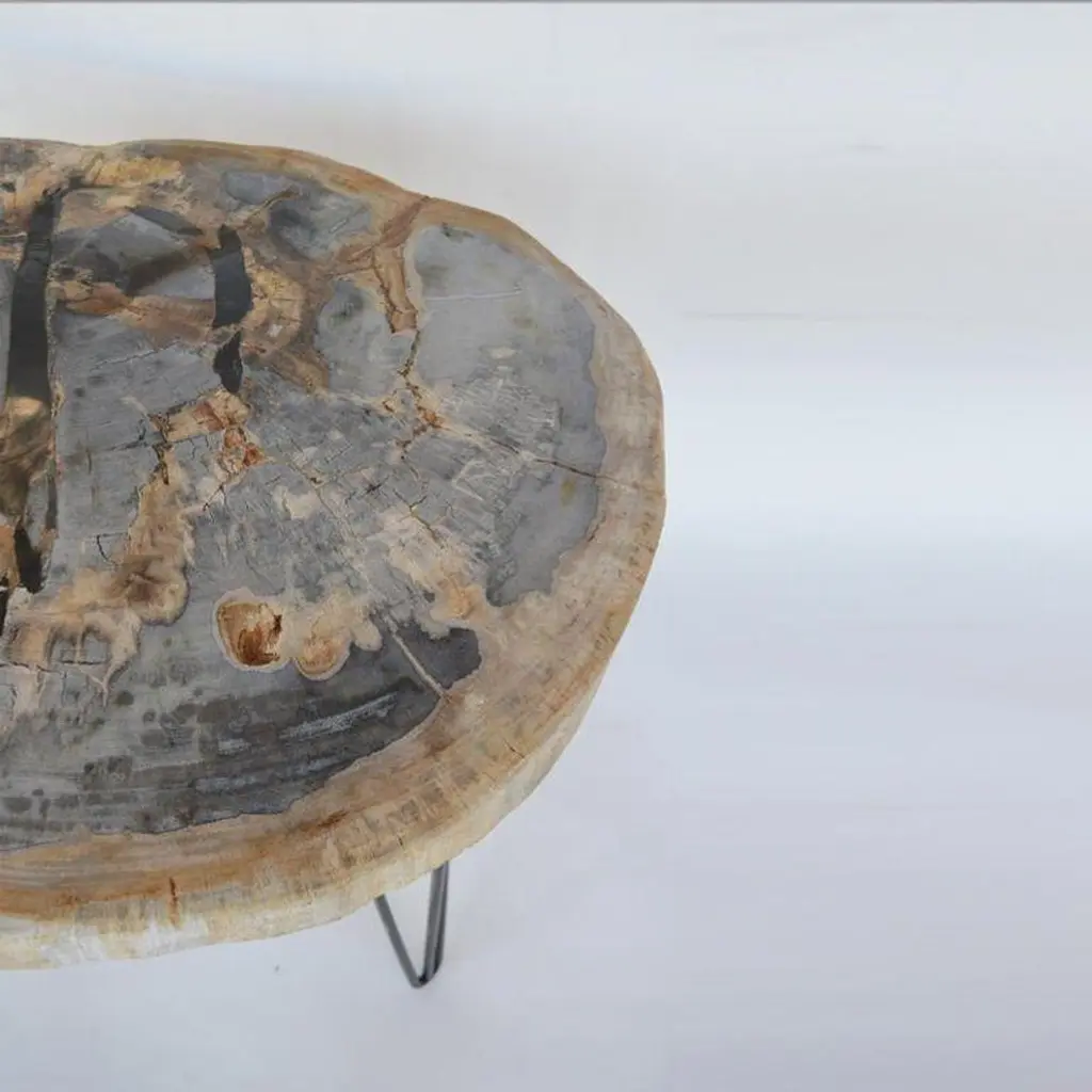 Pair Of Petrified Wood Side Tables With Iron Feet, Late 20th Century