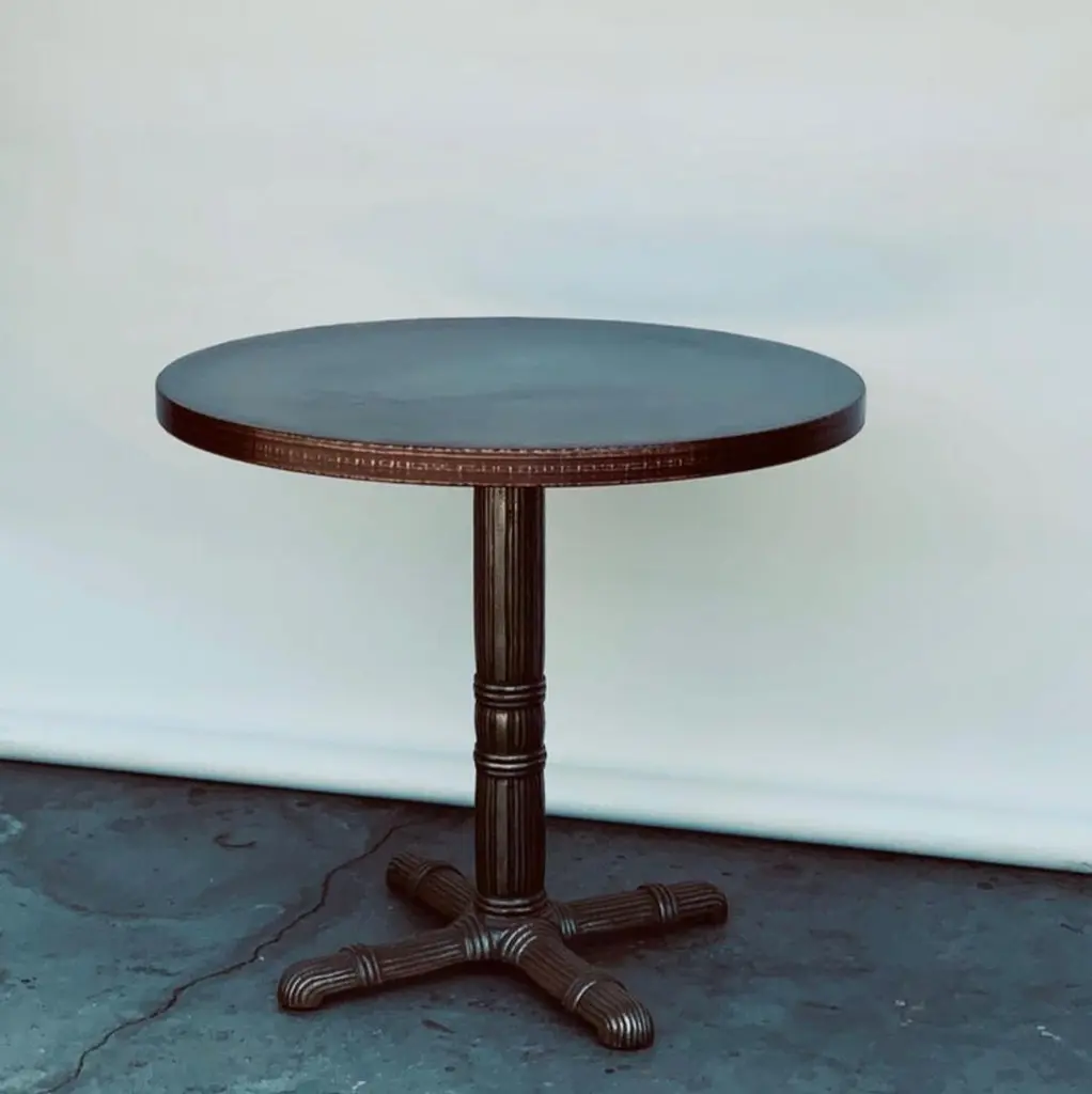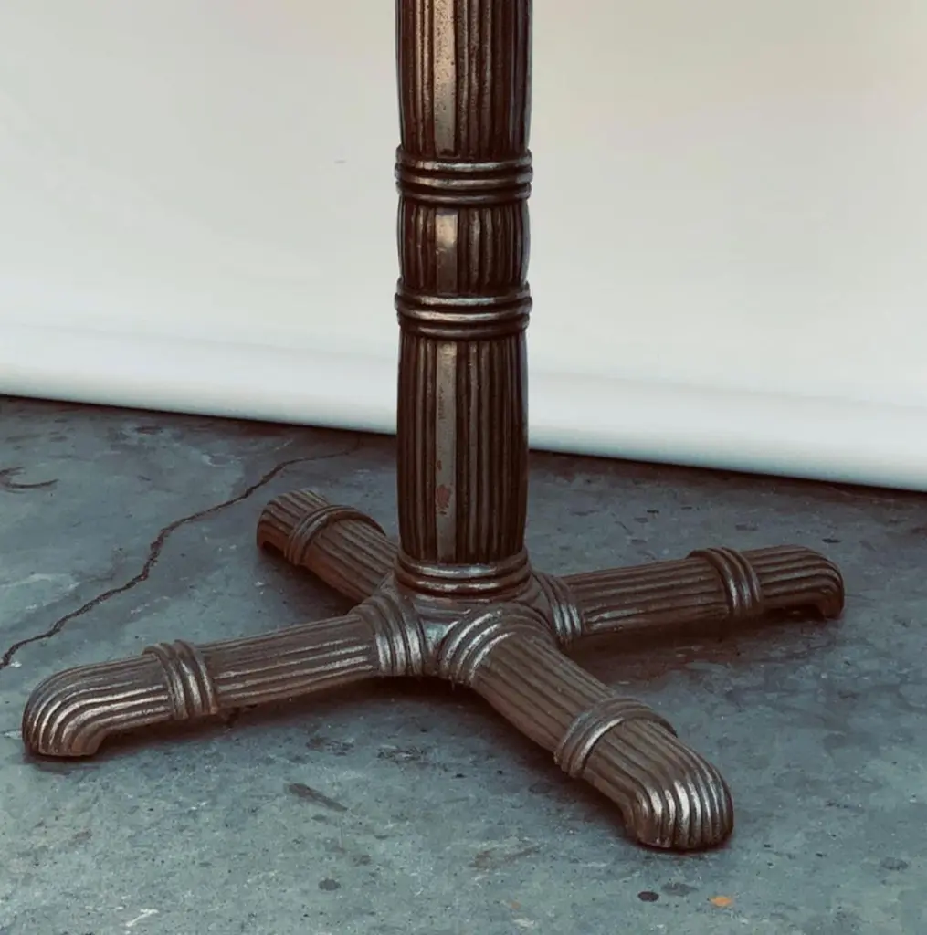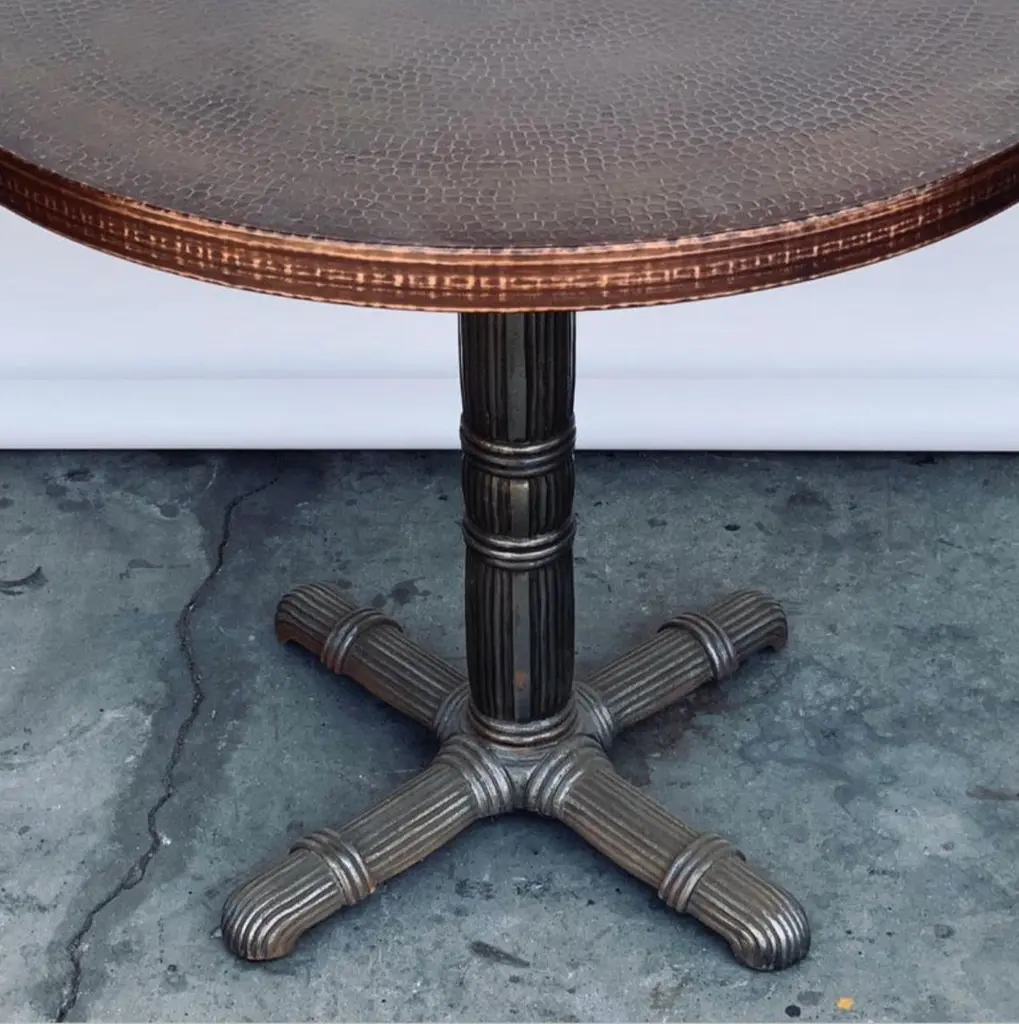 Pair of polished steel and raw copper top gueridon / side tables.Polished steel French Art Deco bases with antiviral raw copper topsThe current height (26 in.) can be adjusted up to 27 in. if necessary.