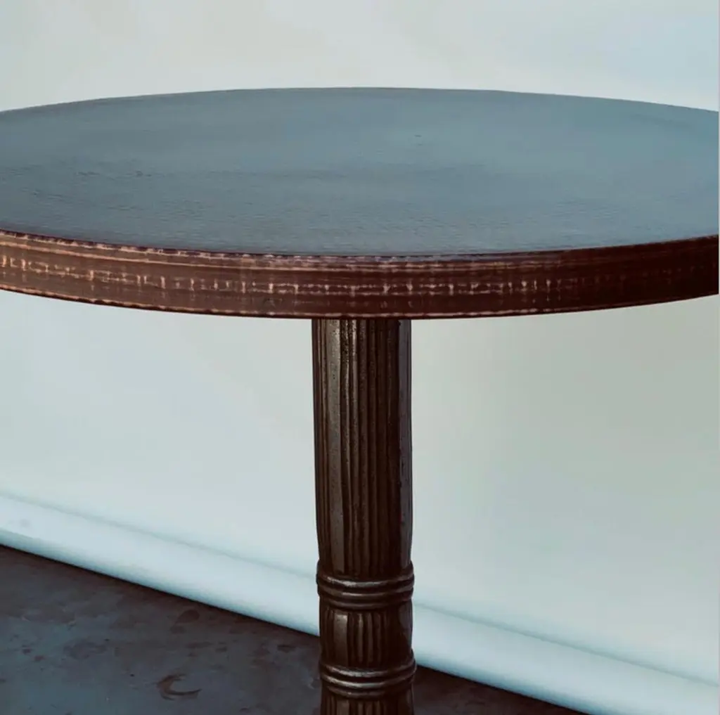 Pair Of Polished Steel And Antiviral Raw Copper Top Gueridon / Side Tables