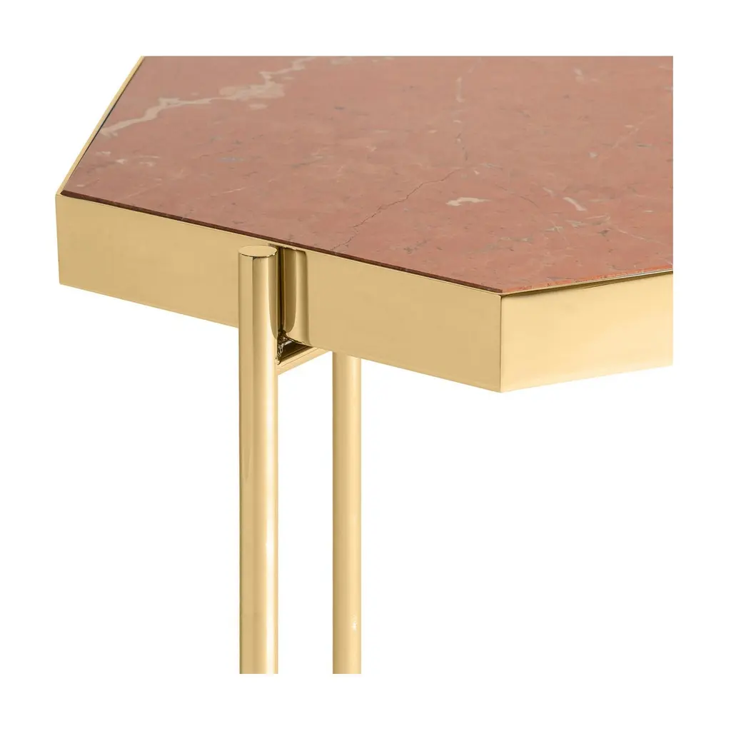 Pair Of Red Alicante Marble Titanium Gold Side Tables