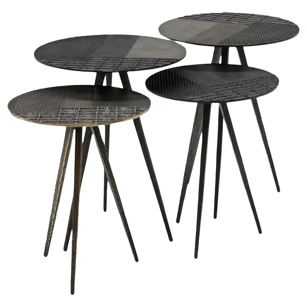 Pair Of Sculptural Side Tables Crafted From Mango Wood & Burnt, Black Finish