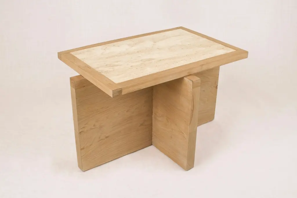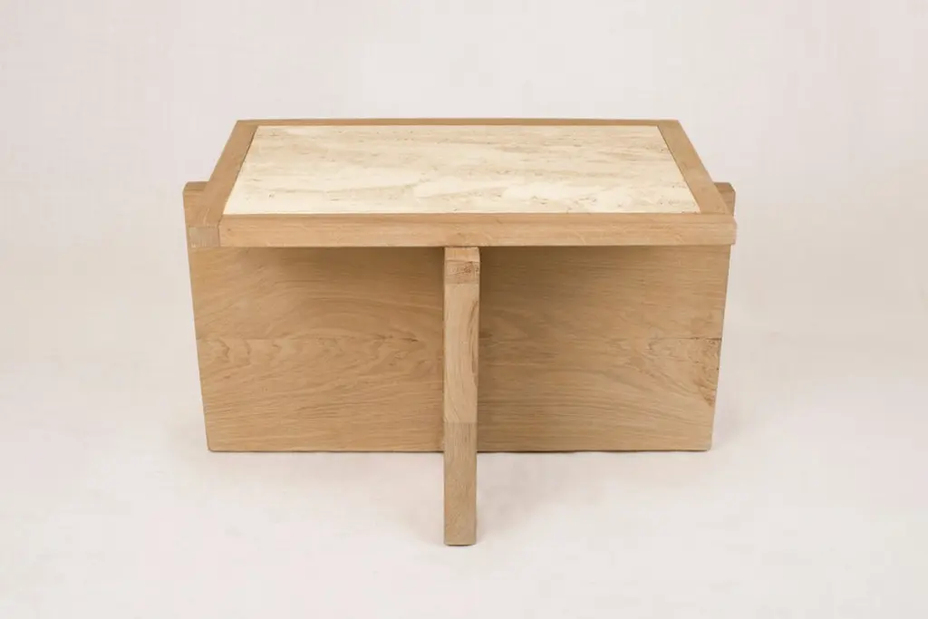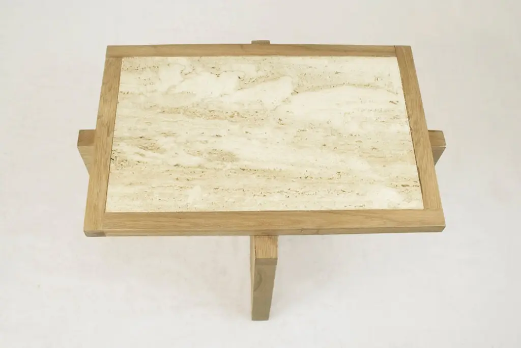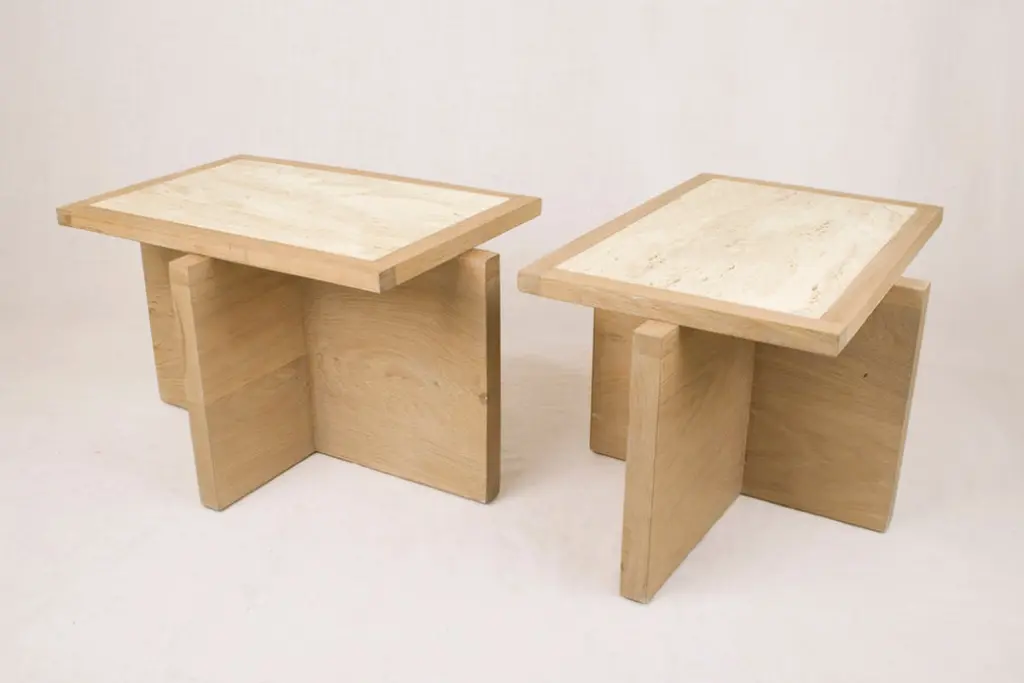 Pair of Serge Castella oak and travertine side table,Oak and travertineCustomizable, any size availableFrance, circa 2000.While studying fashion in Paris, Serge Castella spent his time wandering around flea markets and the louvre. Becoming an antique dealer then became evident. He left his urban lifestyle unhesitatingly to go back to his Spanish roots. Over the years, his clients asked for his help in selecting objects, tips on decorating… until he fully endorses the role of interior designer for them. He started his agency in 2006 with Jason Flinn. Today, as well as Interior Design, Castella designs furniture and lighting and continues his antiquing in buying and selling.