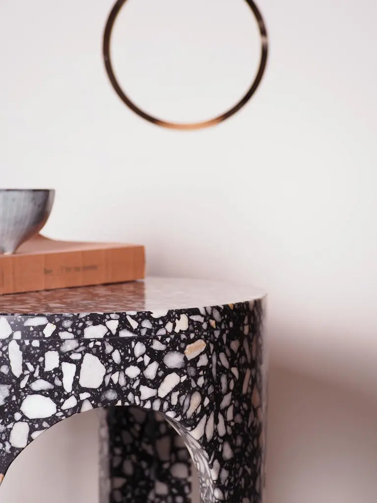 Pair of side tables - Loggia TerrazzoAn essential element with a strong stylistic impact that evokes Classic and basic lines of Greco-floman architecture, which have influenced the history of the applied arts in the following years.The elements are made in "terrazzo". A material, traditionally used in the Renaissance for the paving of the noble palaces, here is reinterpreted in the third dimension.Made of marble and resin grit, Loggia is now available in different color finishing and in different shades and sizes.Material: terrazzo (marble, resin)(LxH) – Ø 38 x 45cm/Log-gia/ is an architectural feature which is a covered exterior gallery orcorridor usually on an upper level, or sometimes ground level. The outer wall is open to the elements, usually supported by a series of columns or arches.Loggias can be located either on the front or side of a building and are notmeant for entrance but as an out-of-door sitting room.
