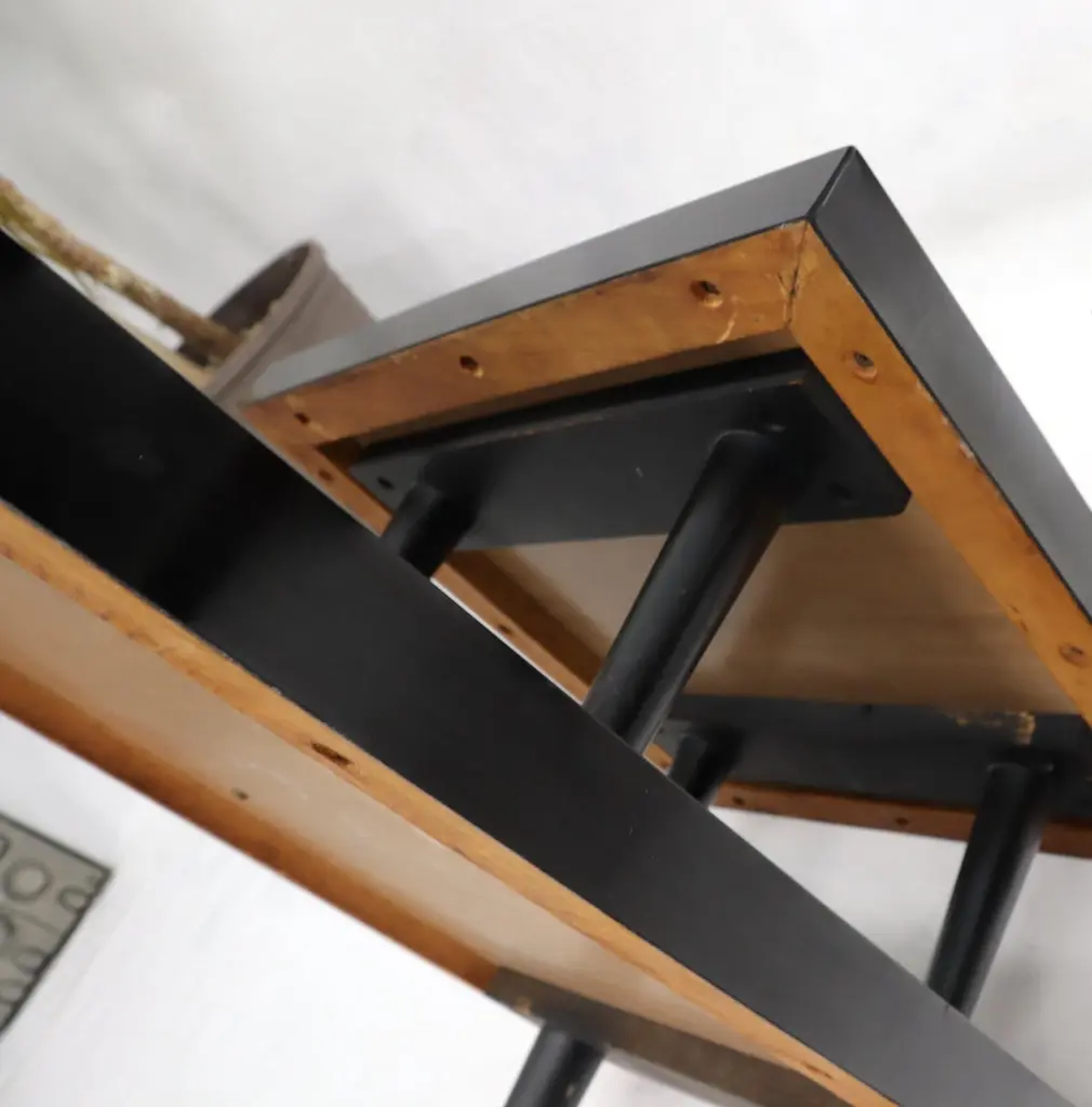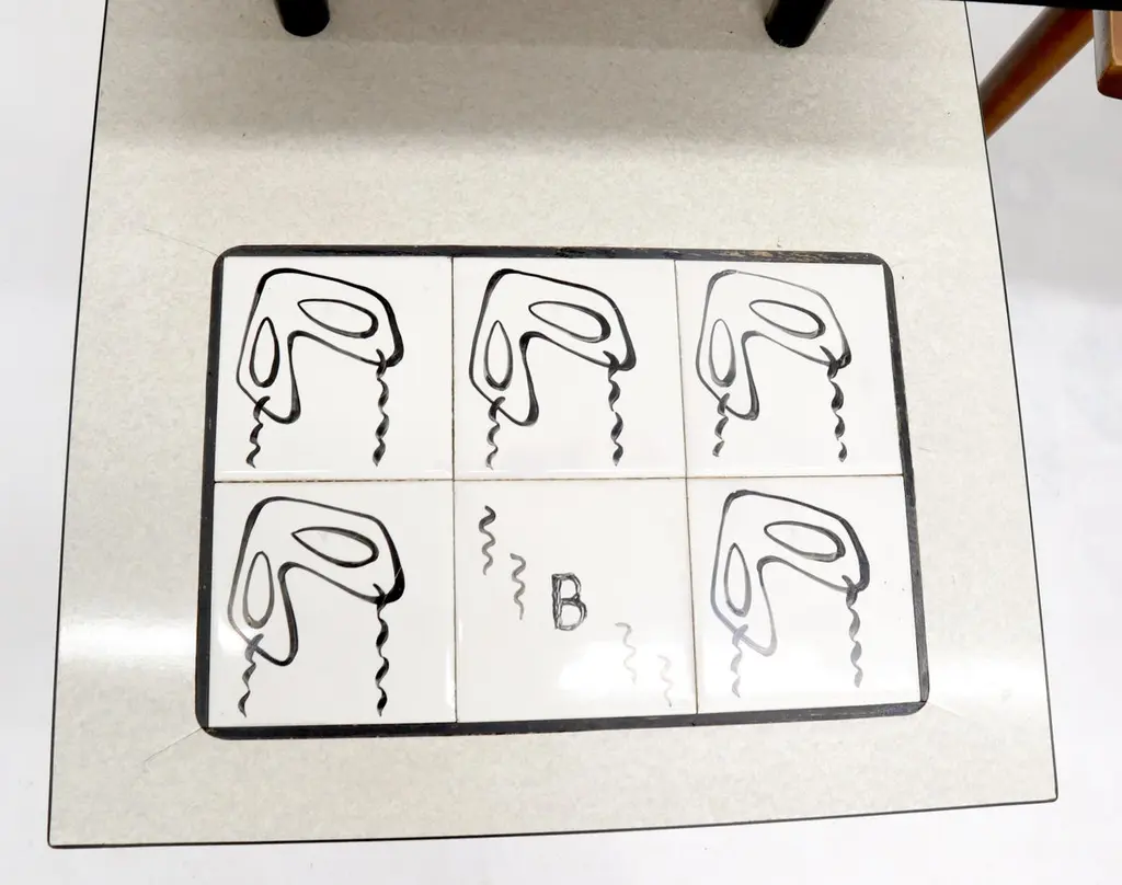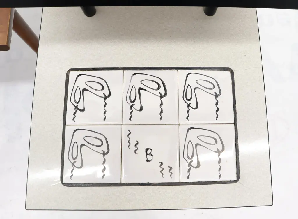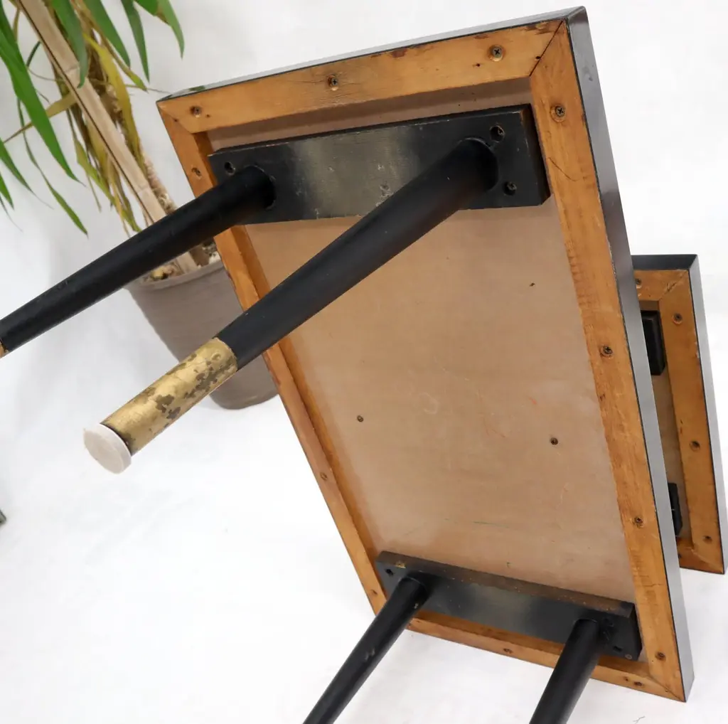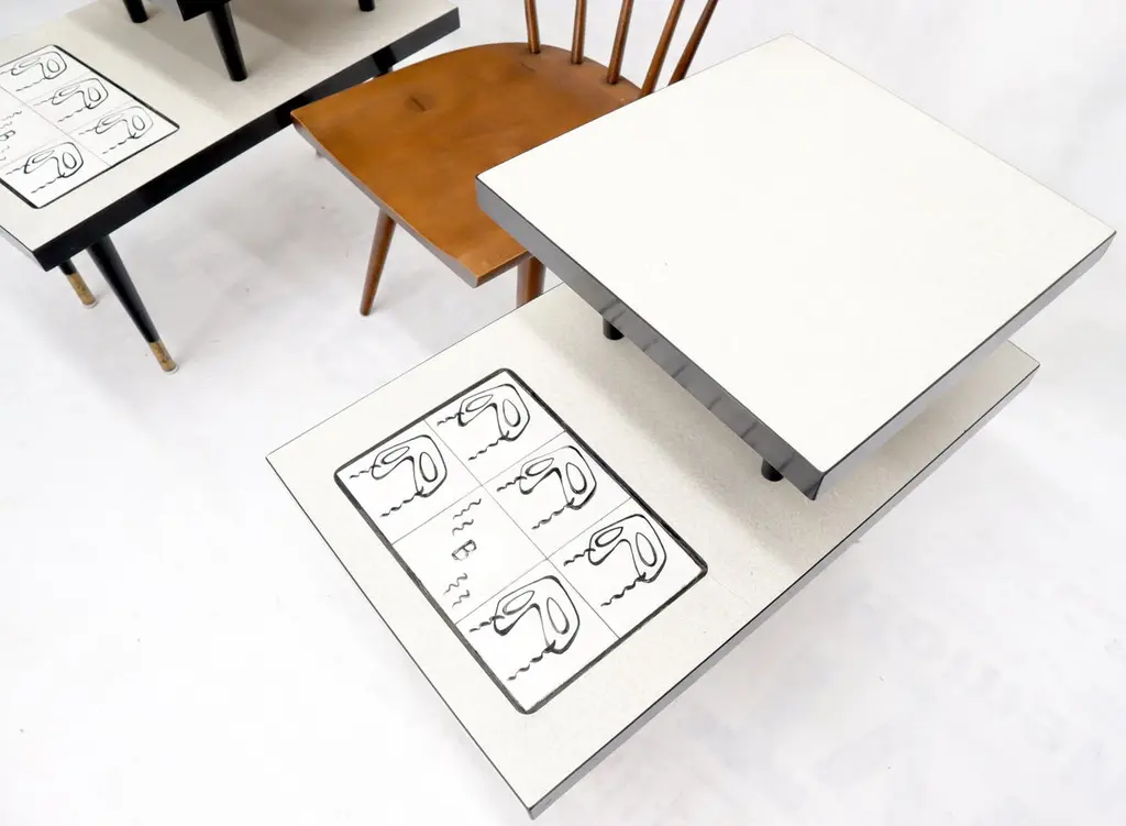 Pair Of Tile Top Step End Side Table On Tapered Dowel Shape Leg