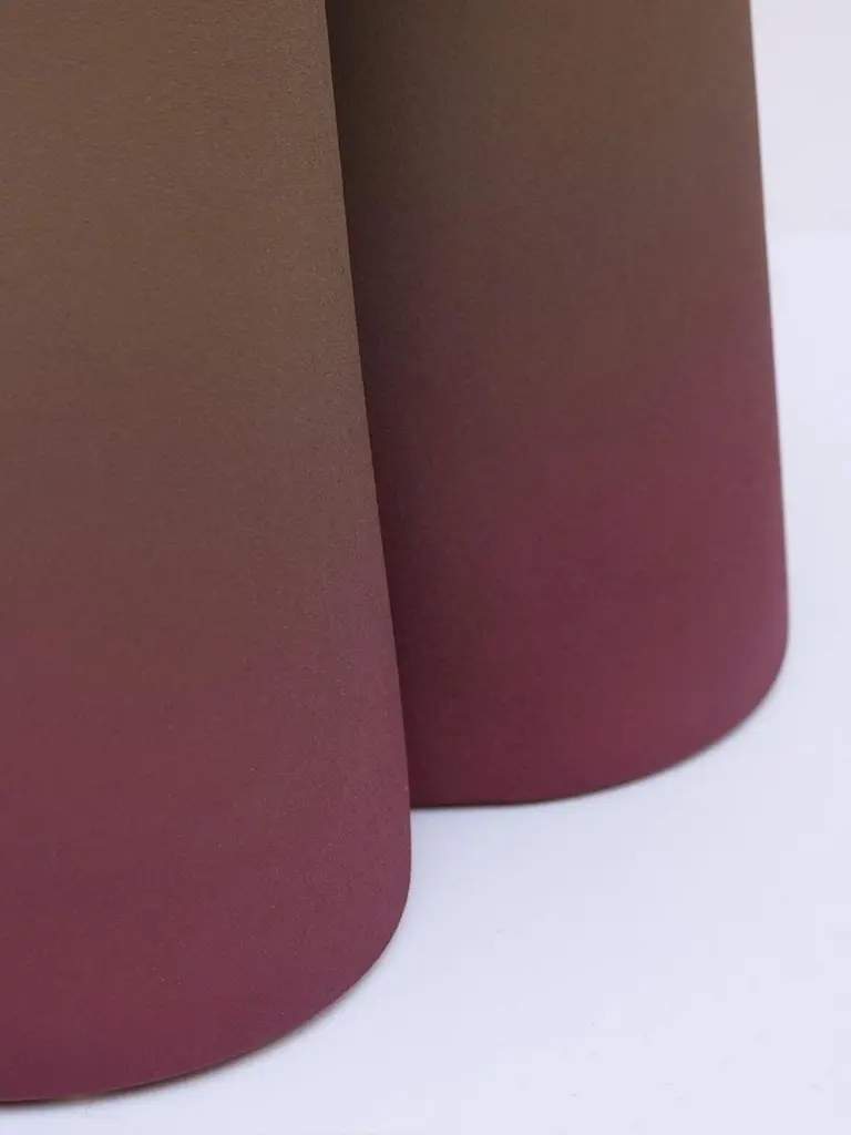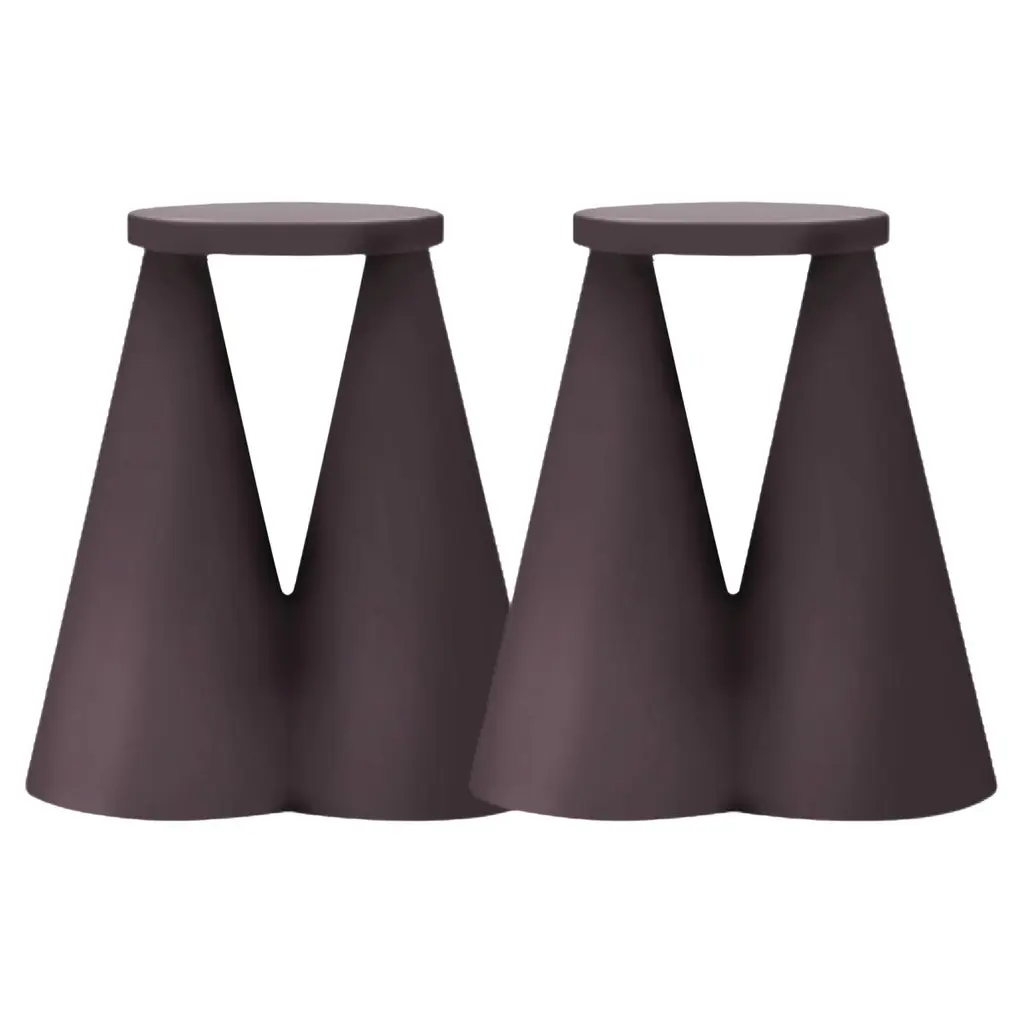 Pair of Unique Handmade Purple Ceramic Isola Small Side Tables by Cara DavideDimensions: 25 x 43 x H 45 cmMaterials: Ceramic / Rough touch finishing.Other color options are available. Bespoke colors can be made on request.Characterised by disproportionate and intersecting volumes, Isola recalls an intimate and primitive nature.Isola side table is completely made in ceramic using high temperature furnace, to make the material stronger. The large base makes the object stable as well as unique on its design. Each piece is then finished by playing with the contrast between the rough surface and the soft shades. Suitable for indoor use only. Do not seat on it. Bespoke colors can be made on request. Complitely local made, Veneto, Italy.Design studio based in Milan, is a collaboration between Cara Judd (South Africa) and Davide Gramatica (Italy). Graduating in product design from IED Milan, Cara and Davide started their professional careers in diverse areas ranging from apprenticing with artisans to working with industrial companies before merging their experience in 2016. They work in the fields of product design, event curation and offer creative consultancy to studios and private clients. Cara and Davide both lecture in the Product Design Department at IED Milan. Passionate about craftsmanship, they also produce their own series of products working together with artisans in Italy and South Africa.During 2020, we worked closely (from a distance) with Portego on some new projects. In our practice, we prioritise the dialogues and details that one can only find when you meet an artisan or visit a factory but that was not possible for the better part of this year. Undoubtedly, this affected our design process and in many ways, Isola was shaped through the unusualness, the limits and intricacies of this time.