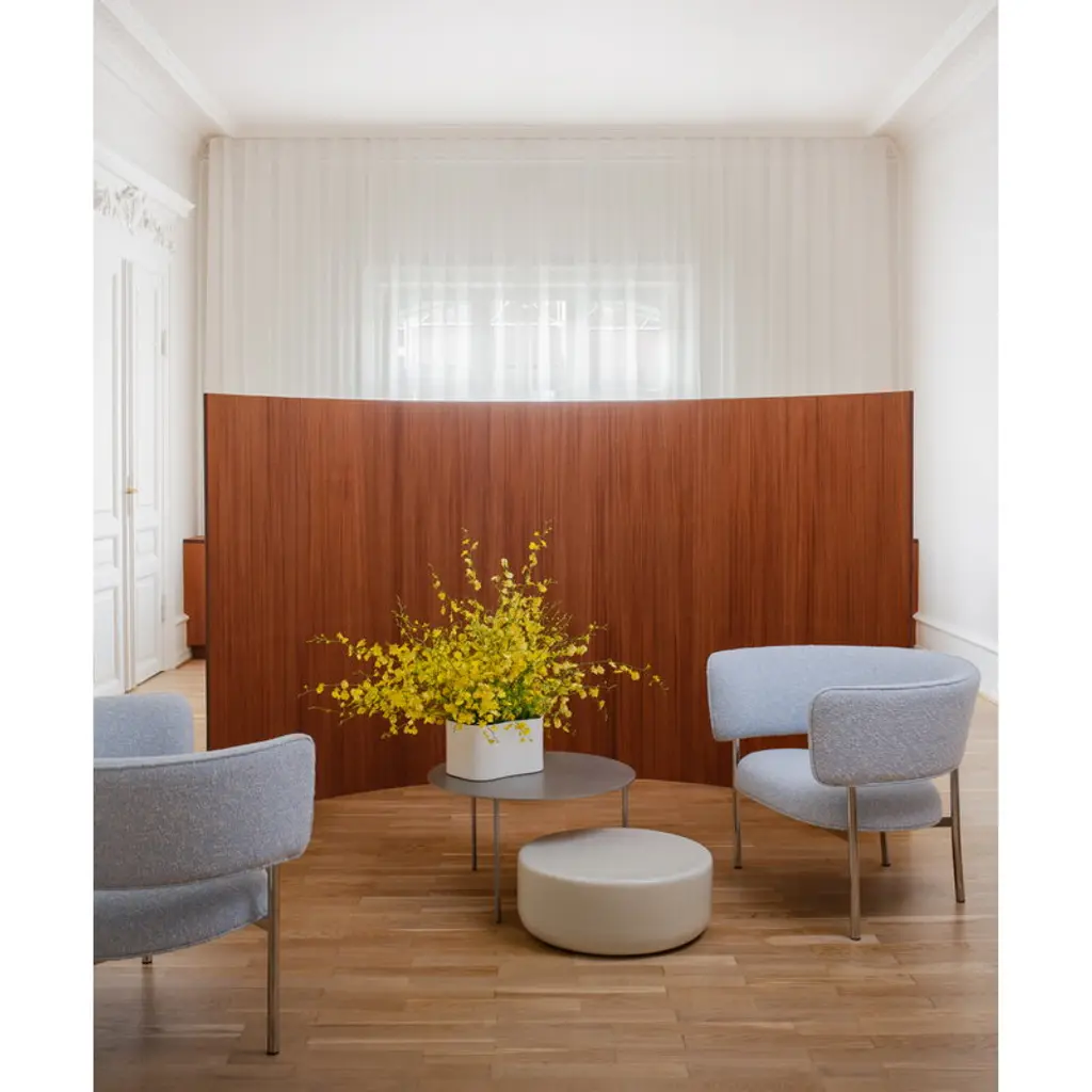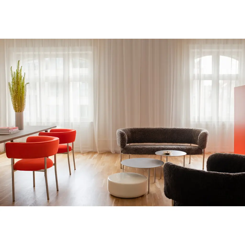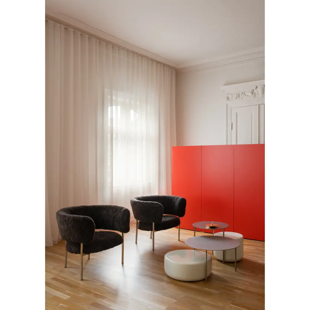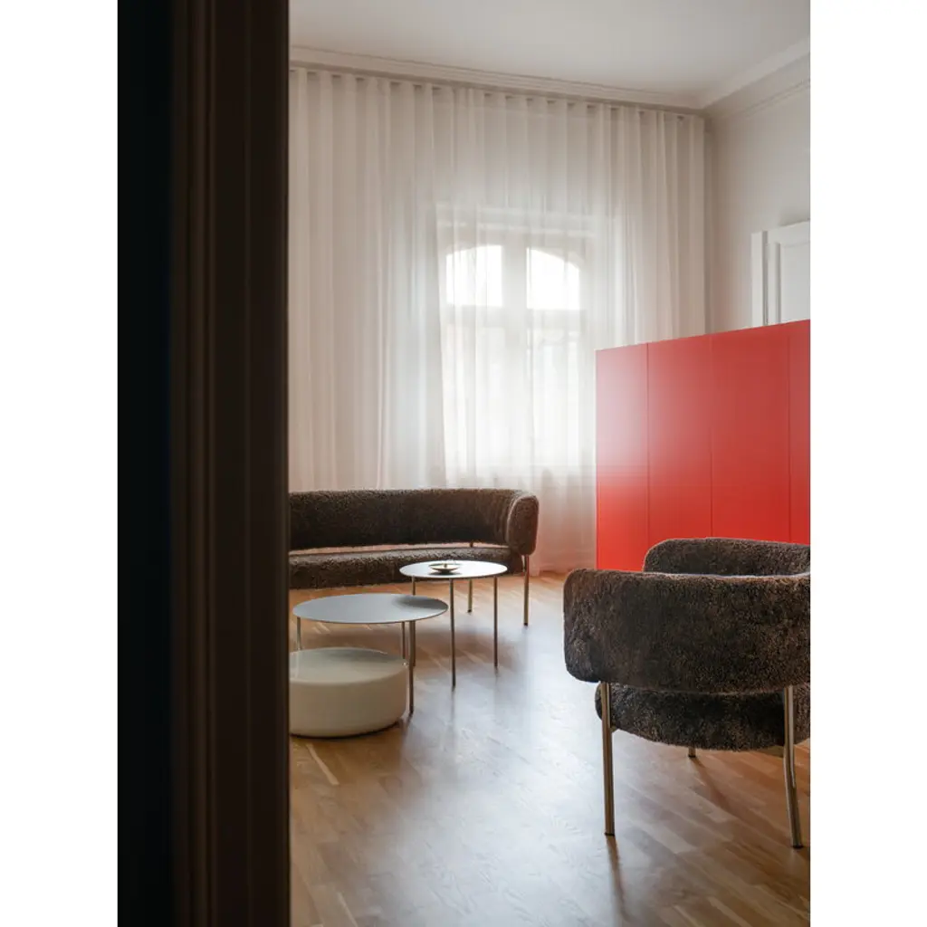 The Pair table by Møbel Copenhagen is a refreshingly minimalist side table by David Thulstrup, featuring a round metal top supported by three slender legs. With its calm proportions and understated materials, the table blends effortlessly into any interior, whether placed beside a sofa, next to the bed or as an extra surface in a hallway or lounge area. The Pair collection takes its name from the tables’ easy combinability: the different sizes, colors and materials are designed to mix and match effortlessly – both with each other and with a wide range of furniture styles. The tables come in various heights, making it easy to create layered surfaces for different uses: one can hold coffee cups and glasses, while another might serve as a stand for flowers or a home for a lamp and decorative objects.