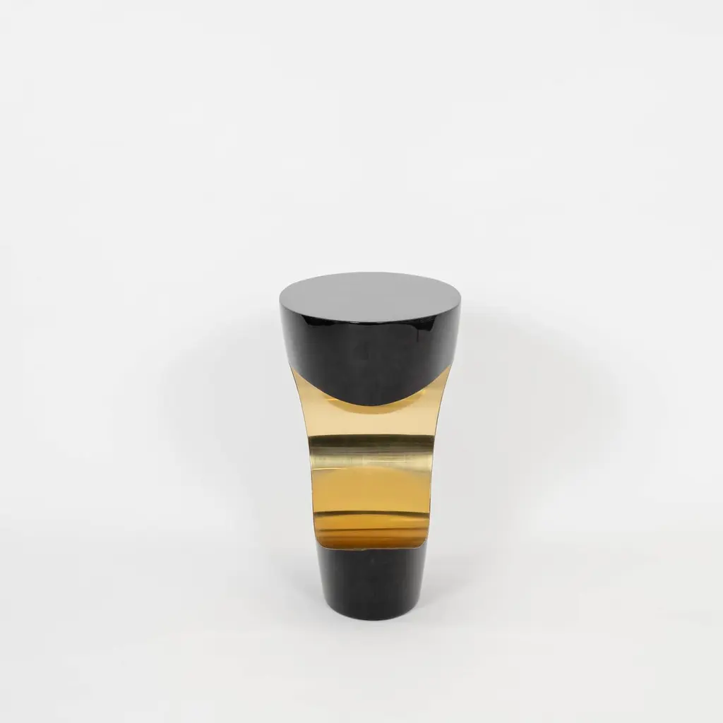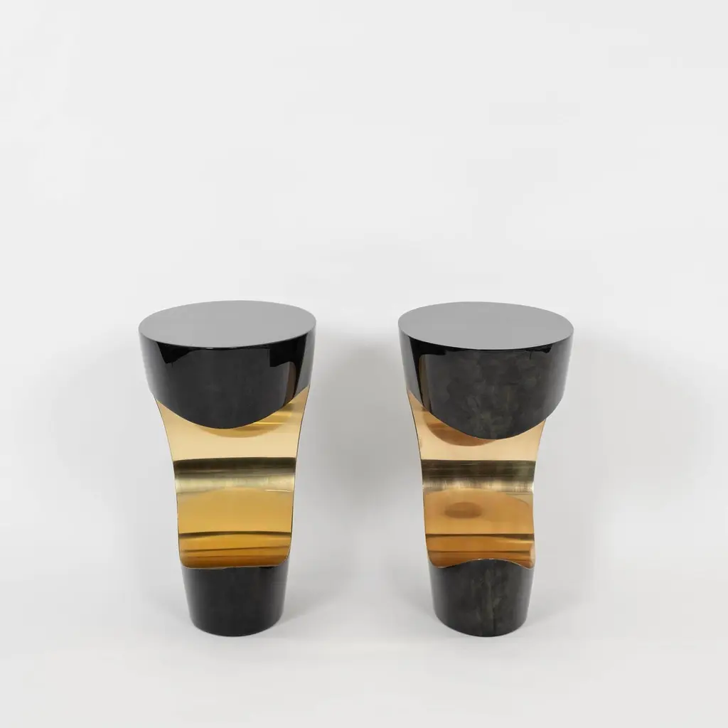 Pair Sylva S.f. Lacquered Charcoal Black Gold Crescent Parchment Tables