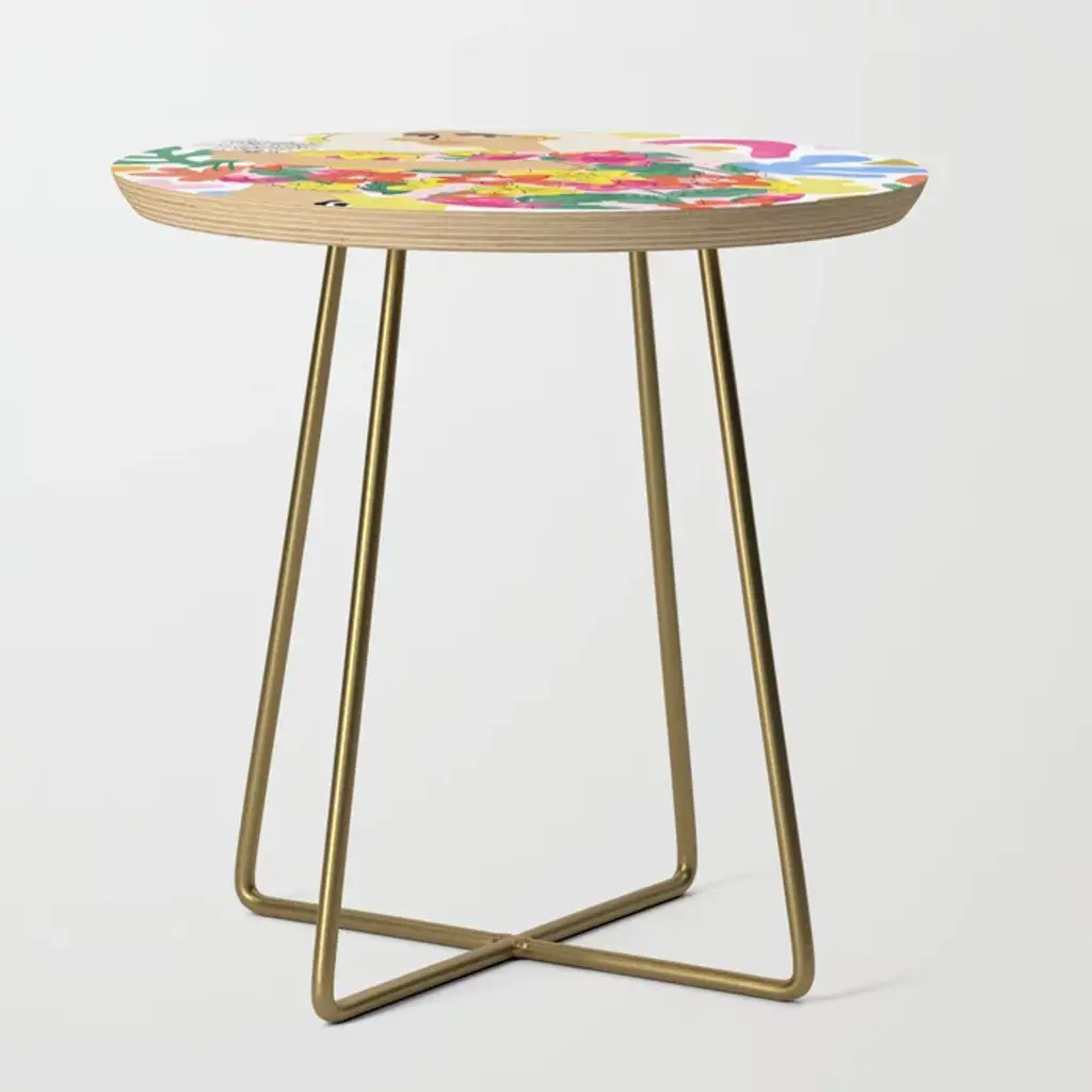 From sideshow to show-stopper, our side tables will be a stunning modern accent to your space. Selecting from our wide array of artist's designs printed with a satin finish on birch wood, you’ll take any room from zero to a hundred. Available in a square or round table top, and black or gold leg colors.Square: 19" x 19" x 19" (H)Round: 19" (diameter) x 19" (H)Baltic birch table top with beveled edgeHigh quality print with satin finishSteel legs available in black or goldAssembly requiredFor more info click here.SHIPPING: Items are made to order and typically ship within 3-4 business days. Click here for more information about delivery options.Furniture sales are final. Click here for more information on returns.