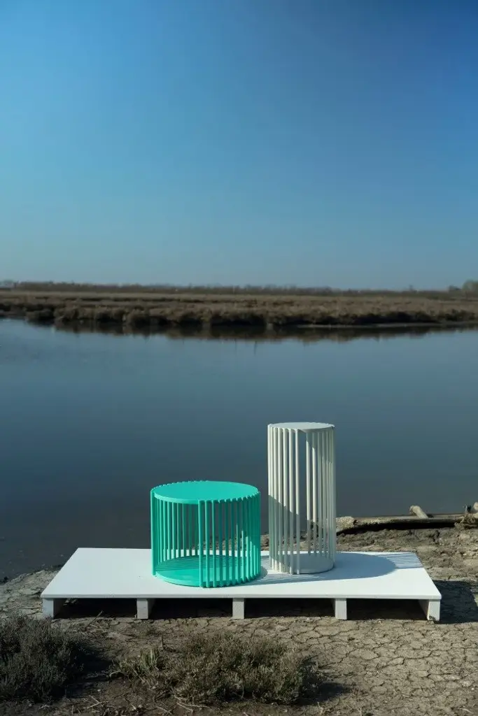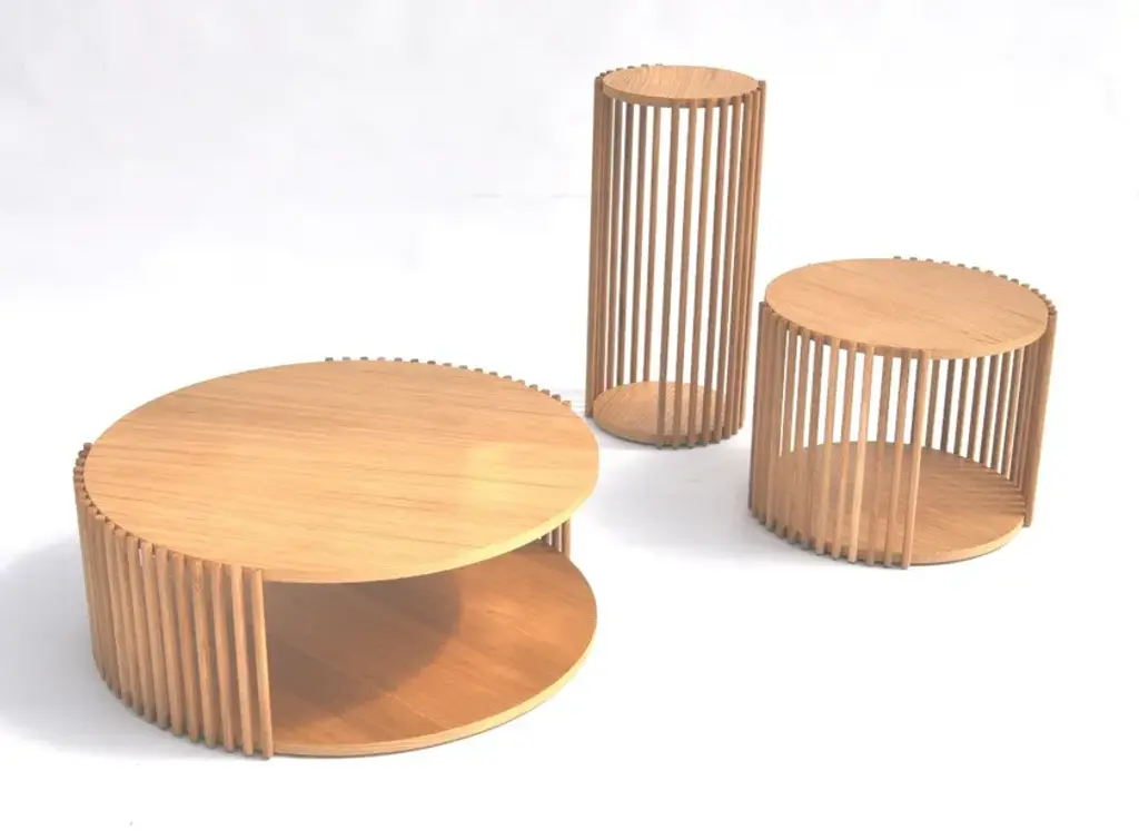 Palafitte is a series of coffee tables perfect for the living area or as a bedside table, ideal in a lounge area of an office or a hotel. The variety of heights and widths enables you to adapt them to a wide range of project requirements. Slim solid wood strips support veneered wood tops. Palafitte is available in various essences and colours of the Medulum palette. Materials: lacquered wood, canaletto walnut, oak.Colors: colors L folder.Venice, the floating city, with its urbanistic system based on a myriad of stakes immersed in water, is the inspiration for a collection of furnishing accessories composed of circular tops that, depending on the point of view, seem to be laid on slender strips or suspended in precarious balance. A graphism of vertical and horizontal lines that draws tables and shelves of different sizes.
