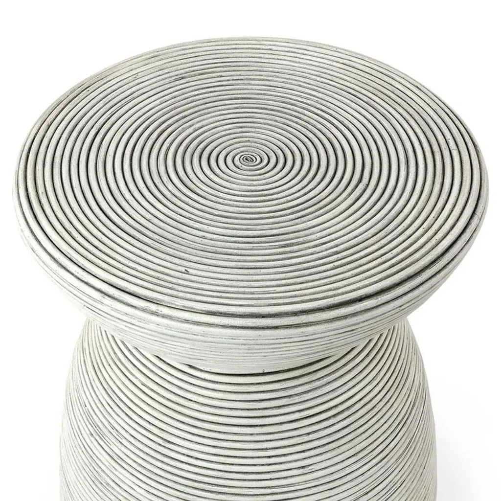 Palecek Hewitt Coastal Beach Whitewashed Pencil Pole Rattan Round Side Table