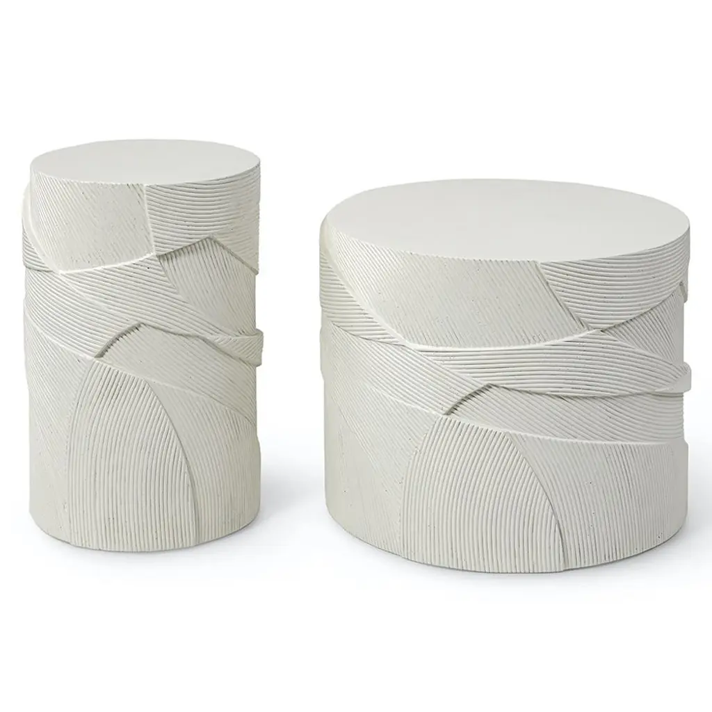 Palecek Sloane Modern Classic White Stone Drum Round Outdoor Drink Side Table