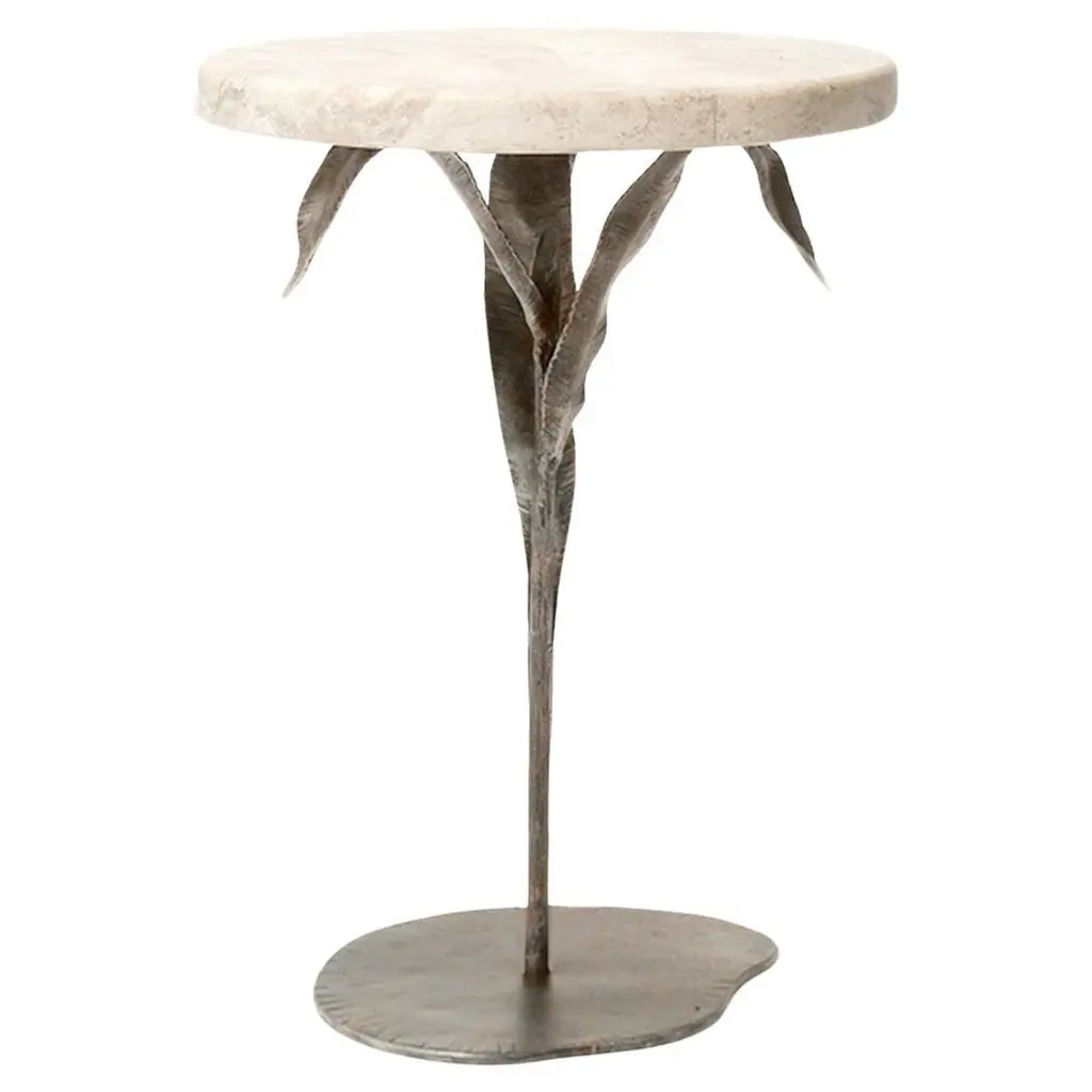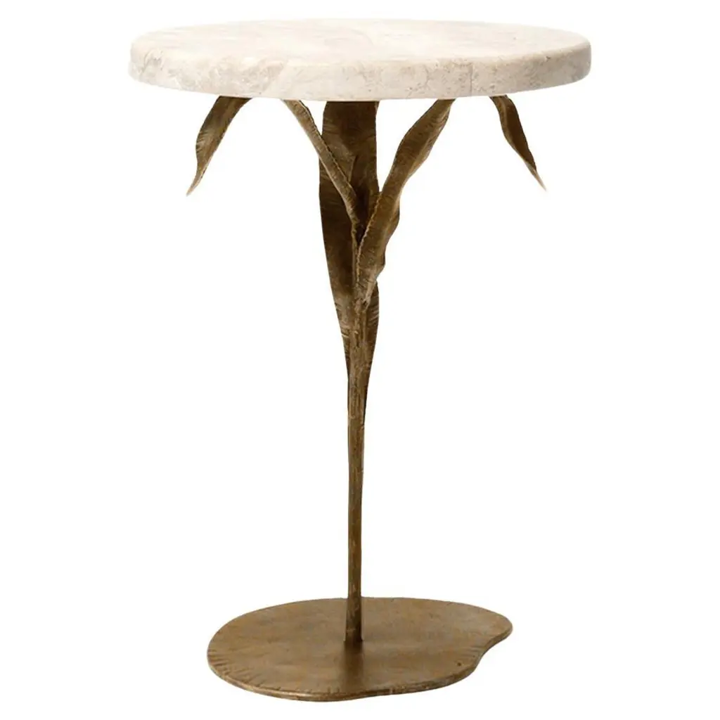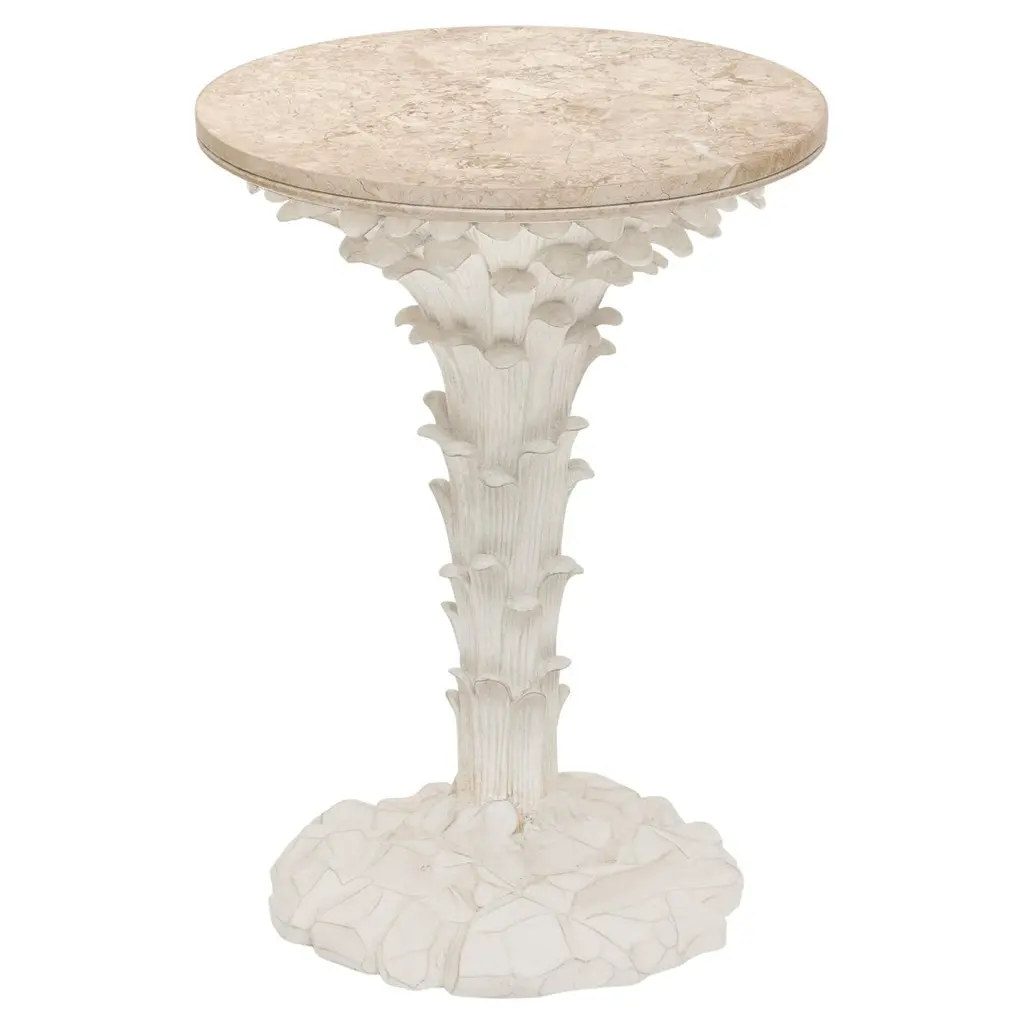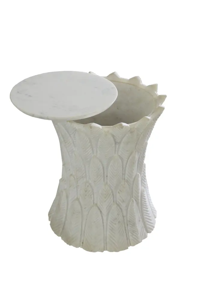 Palm Leaves Side Table In Agra White Marble By Stephanie Odegard