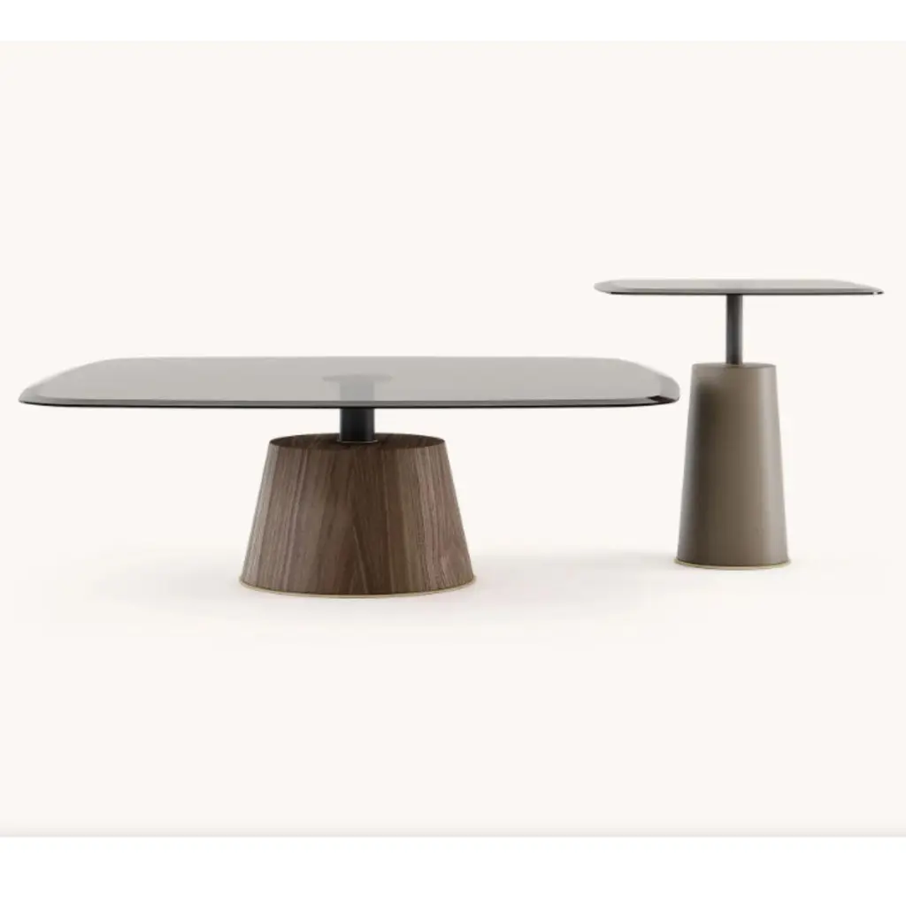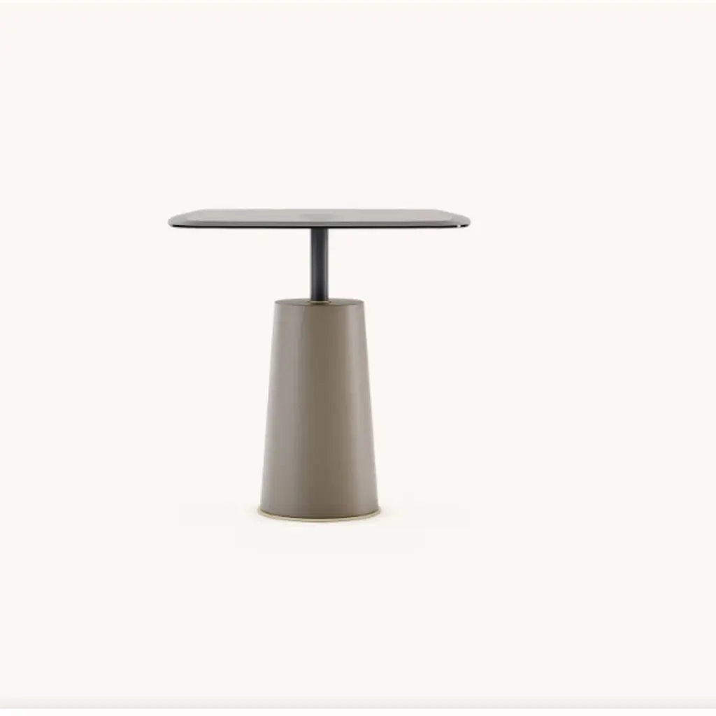 Panton side table by DomkapaDimensions: W 50 x D 50 x H 51 cm.Materials: Grey beige matte lacquered, bronze glass, black texturized, gold brushed stainless steel.Also available in different materials.Panton is a superb table with a cozy style, generous shapes, and curvaceous design. The round glass top is welded to the conical wood base serving for various functions that can be included in both domestic settings and public venues. Along the piece, you will find gentle stainless steel details that can embellish it and take it to another level.Available in coffee and side table dimensions, this is a versatile piece that can be customized in its elements.Domkapa holds a tremendous passion for detailed stitching, presenting several similarities to the haute-couture philosophy focused on the value of a “made by hand”. Based in Portugal, Domkapa was founded in 2009 as a Private Label. The long and fruitful path, full of experience and achievements inspired the brand’s new identity and independence, in 2017.Domkapa challenges its team to create the perfect daily meeting between design and comfort in each piece of the brand’s collections. Our design team works side by side with the production, and this organic synergy allows the creation of innovative designs.