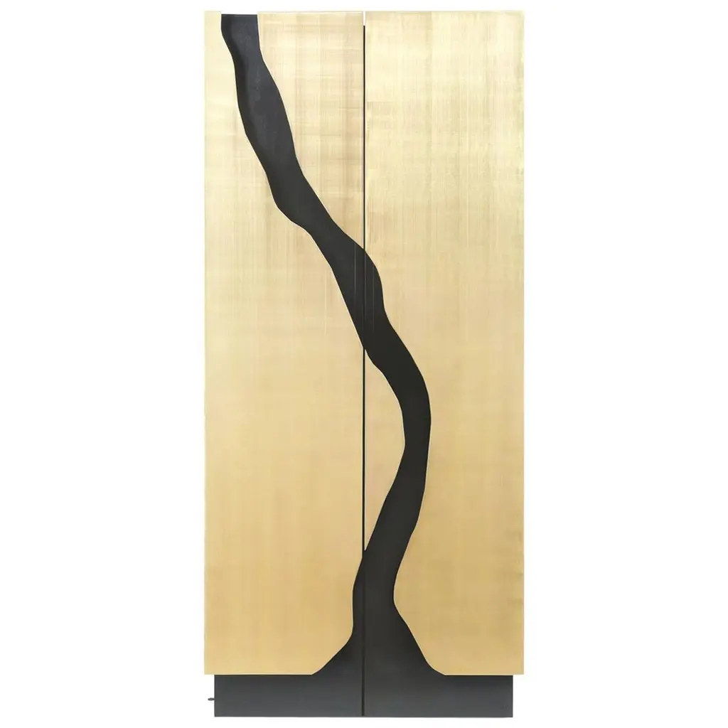 Side table Paradise features a mahogany structure with its inside finished in polished brass, exterior finished in coated polished stainless steel.Also available in walnut wood, or poplar wood, or elm wood with its inside finish in polished brass.